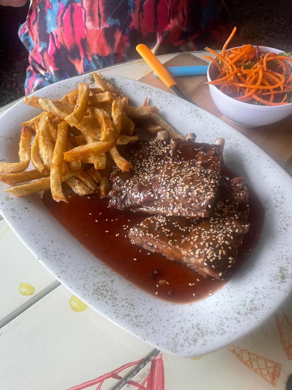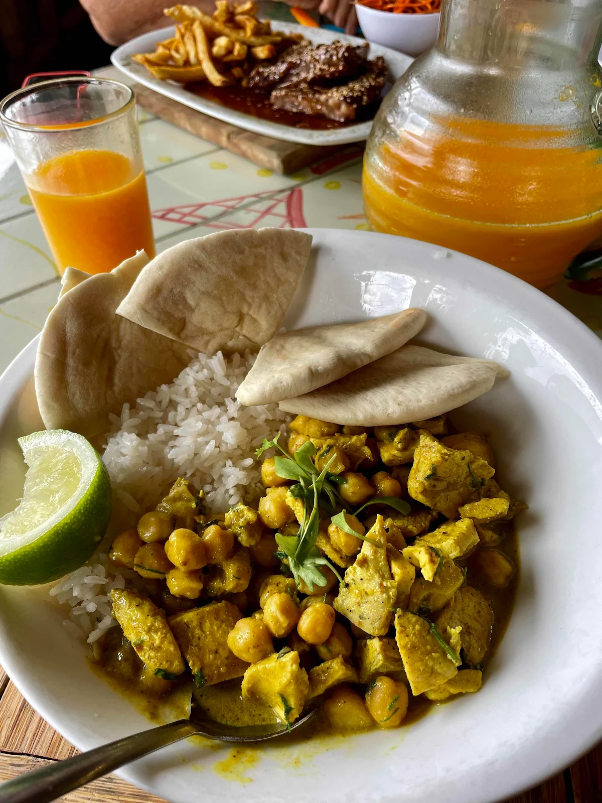 Chicken and garbanzo bean curry was excellent and a welcome change from Colombian food. I tasted the ribs but half a plate of this and I was full: