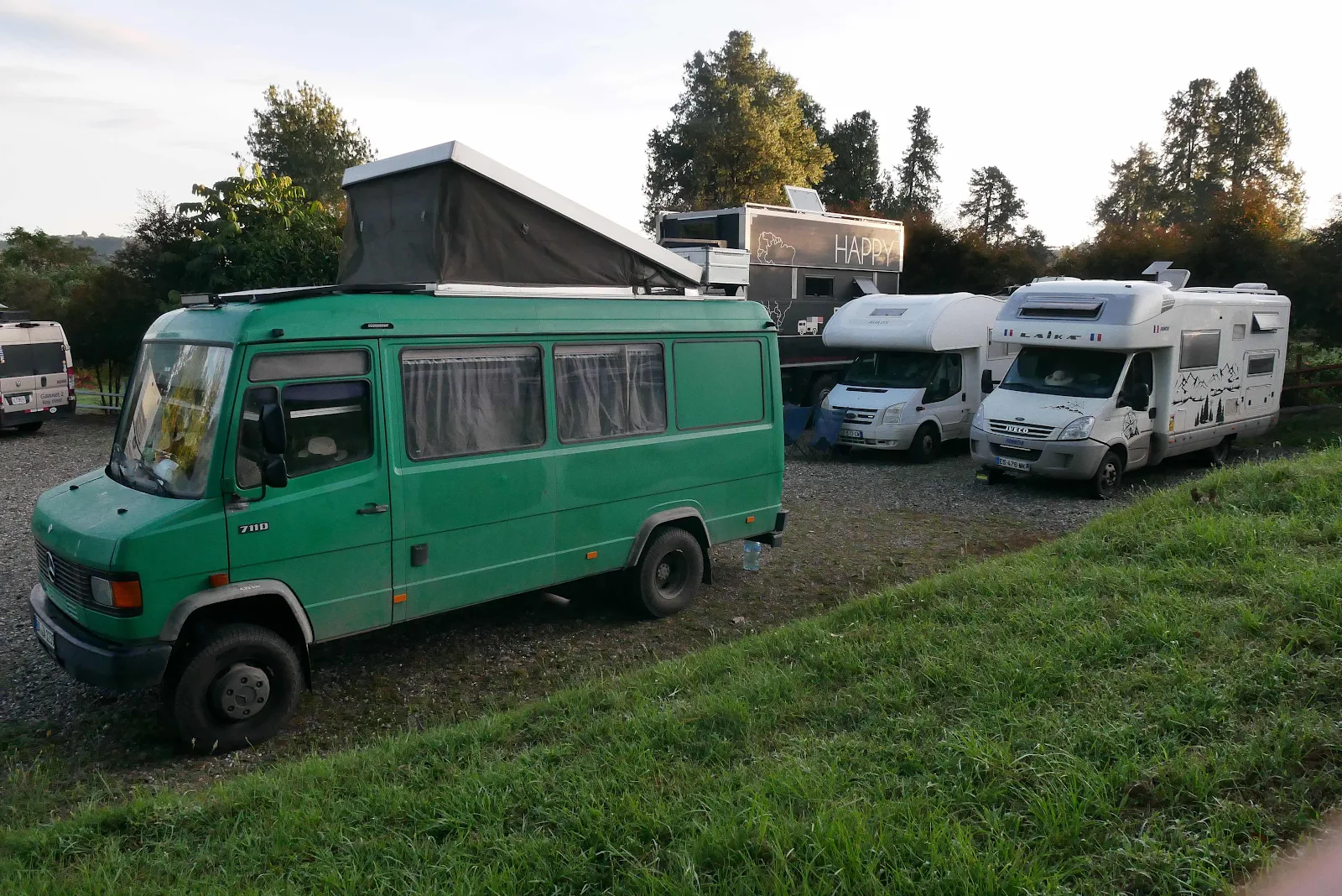 All four vehicles have children and last night they showed a movie for them on the white screen hanging from Jan’s green Iveco truck. The world outside may be chaos but in here it’s all normal; we now hang about and wait for things to get better.