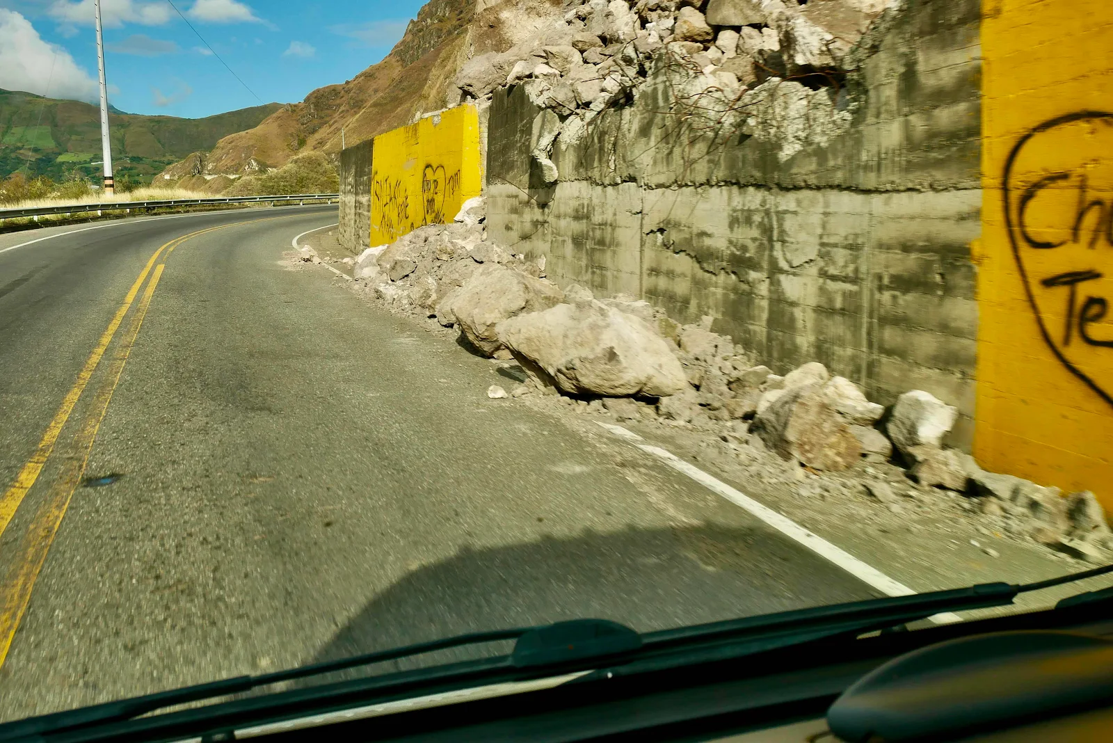 When the road gets gnarly I turn to Layne and hope she got something I can use. These are mine of some difficult moments on Highway 25 to Pasto. This is the scene of a giant mudslide: