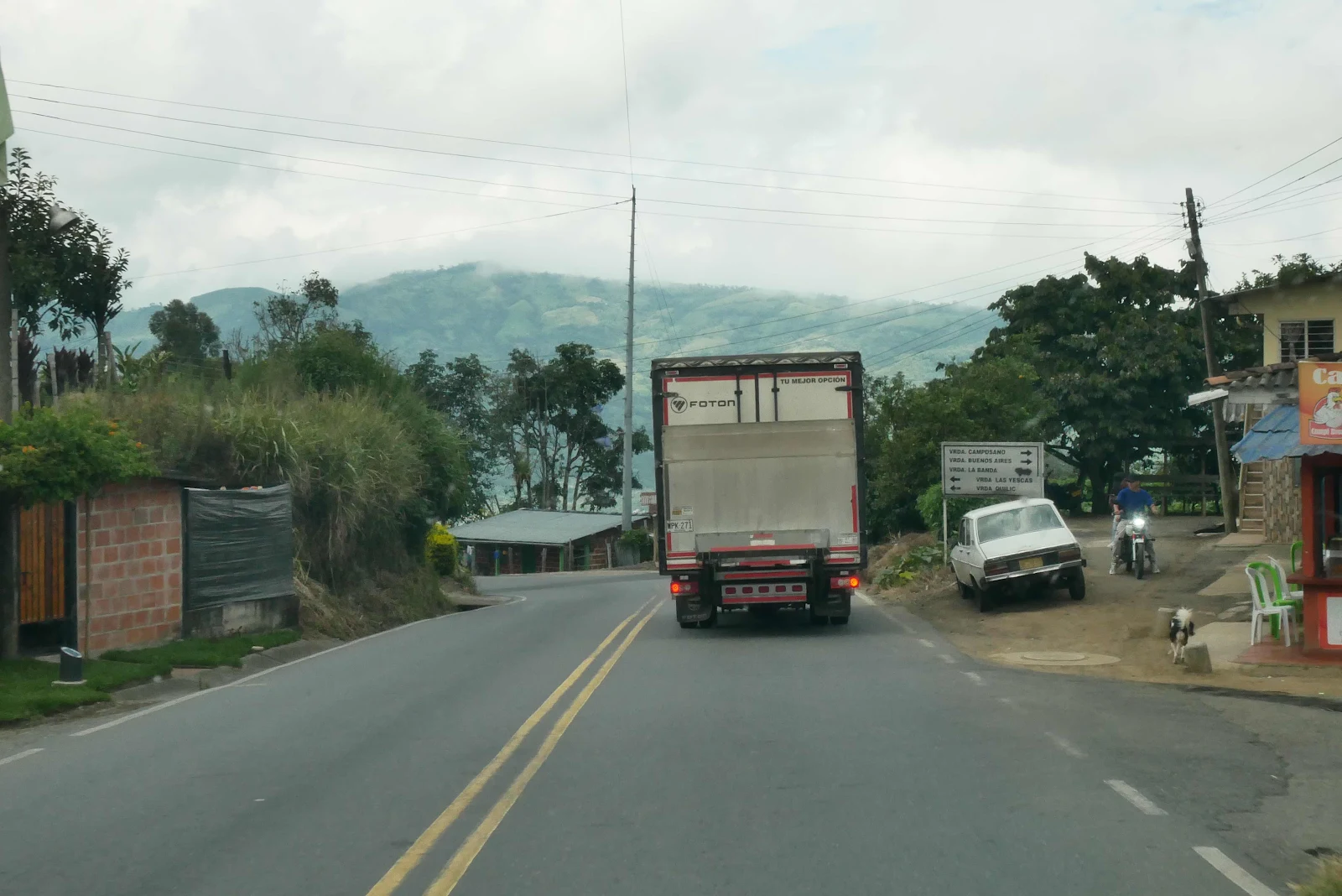 This was Sunday in Popayán in the middle of a three day weekend. The traffic wasn’t heavy but we passed by roadside gatherings, a few bicycles and lots of families out for the day or weekend.