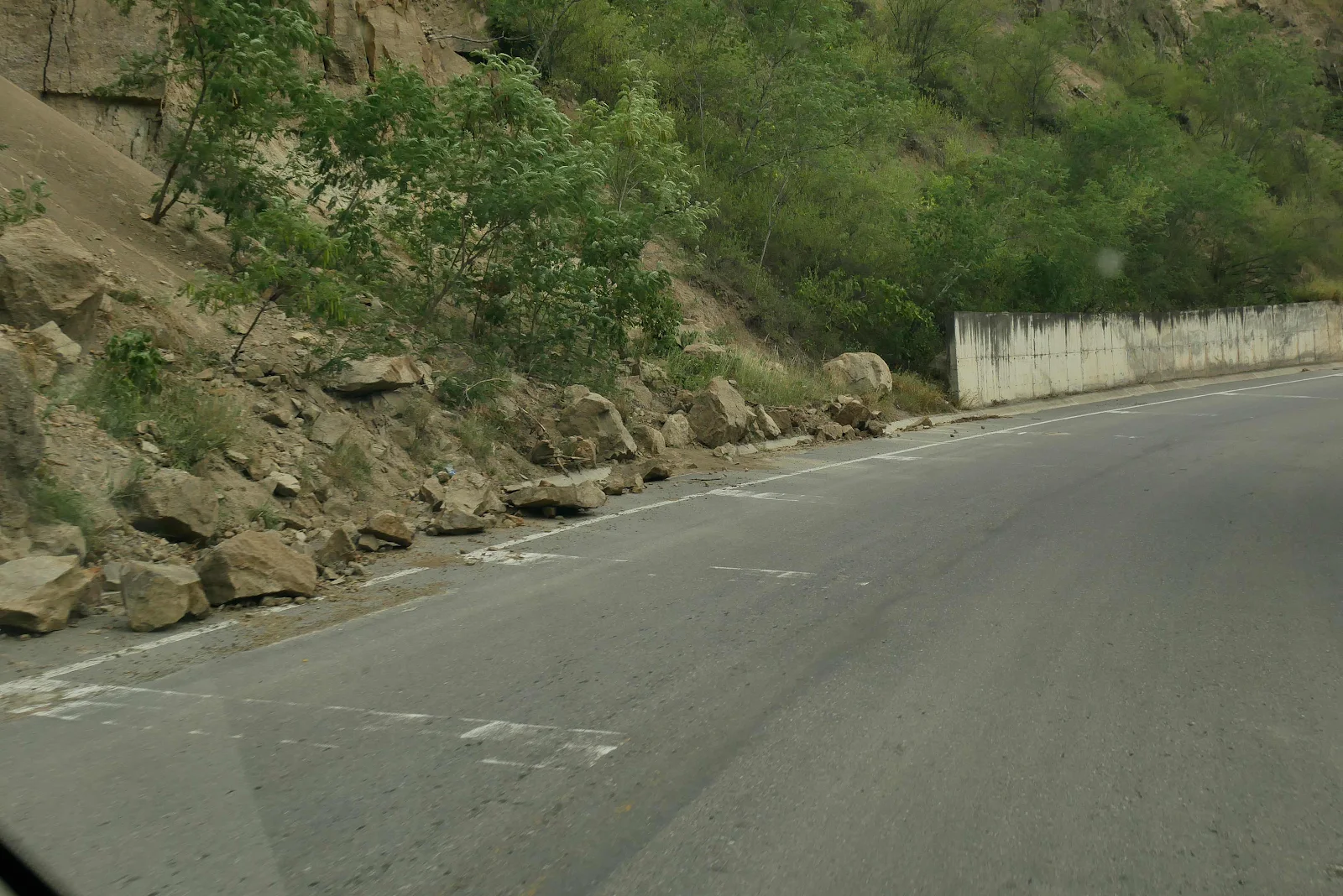 There were some rocks in the road, not photographed for reasons explained above but there was lots of evidence of slides.