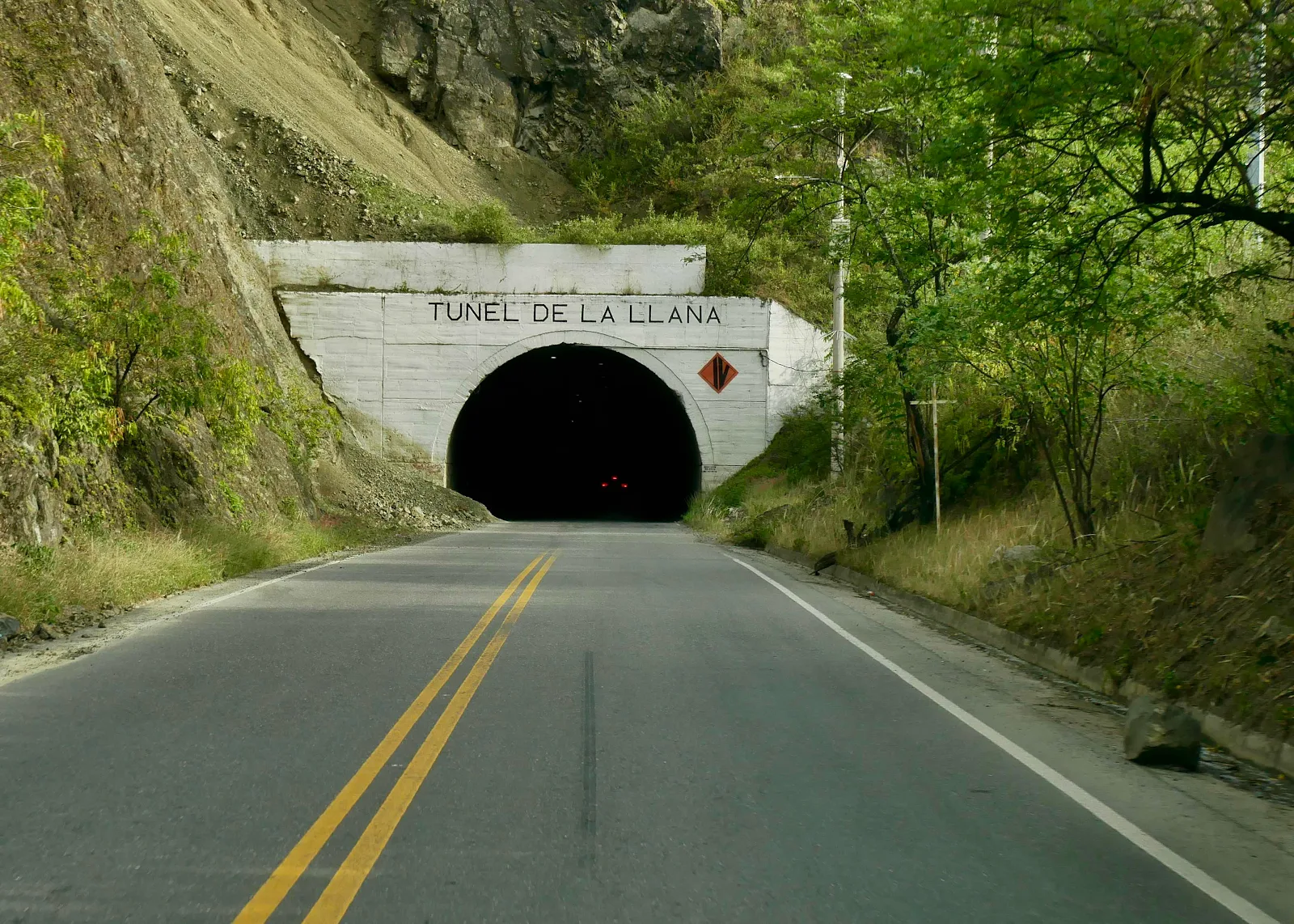 Driving with headlights on in a tunnel is a law not taken seriously in Colombia. Yeah, I had a few gringo moments in the dark, “why can’t they …?” me yelling into the void after another near miss. Note the mid slides at the entrance, which doesn’t help inspire confidence.