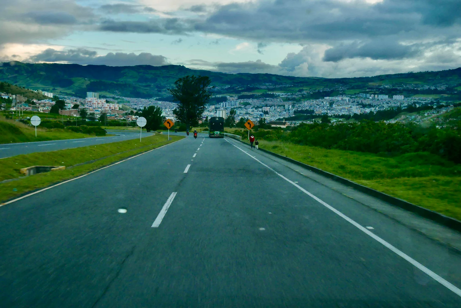But the highway wasn’t like that. The road went up a mountain ridge, then back down and then it crossed a wide valley and then climbed another ridge before we reached the city of Pasto and camped at 9,000 feet with overnight temperatures near fifty degrees.