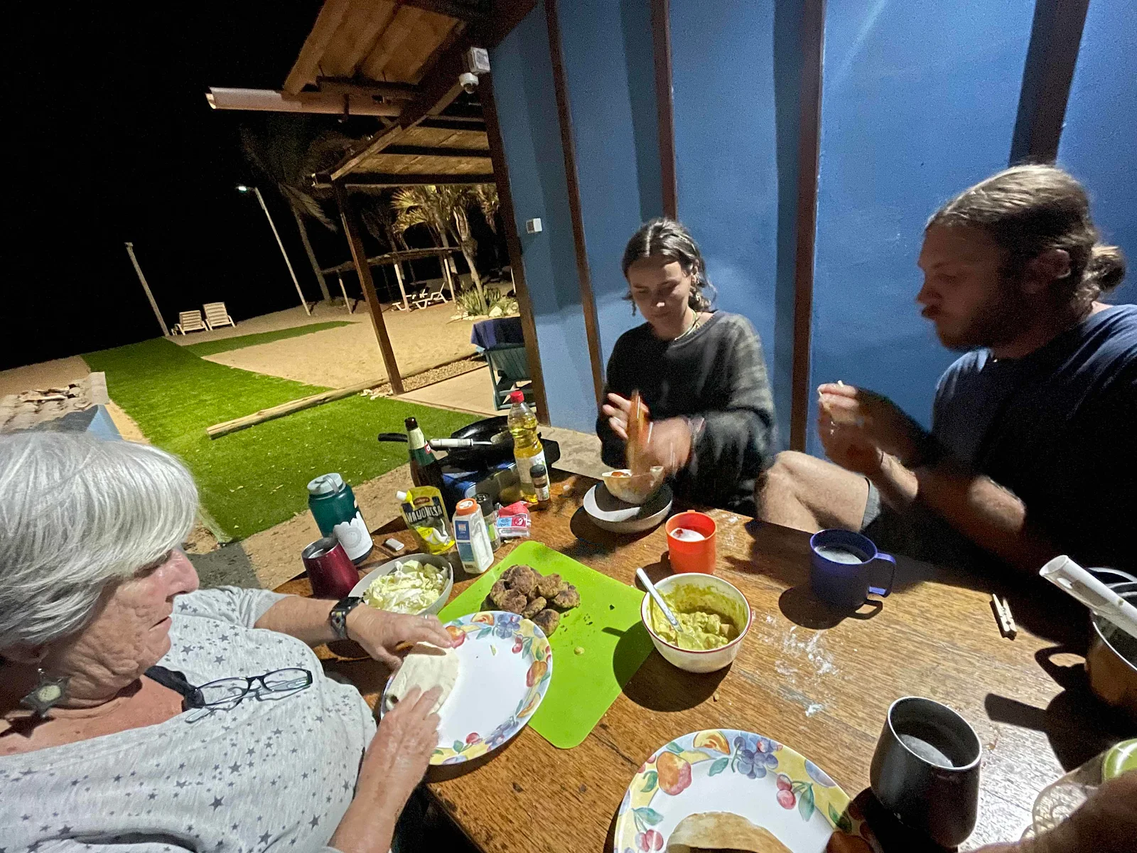 Dinner was falafel and conversation while watching the sun go down and then bed and sleep for dessert.