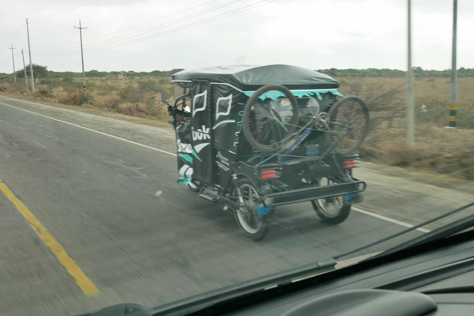The drive from the border was dusty and messy and filled with motorcycles adapted to three wheelers as taxis and pickups and general purpose transport all at 35 miles per hour.