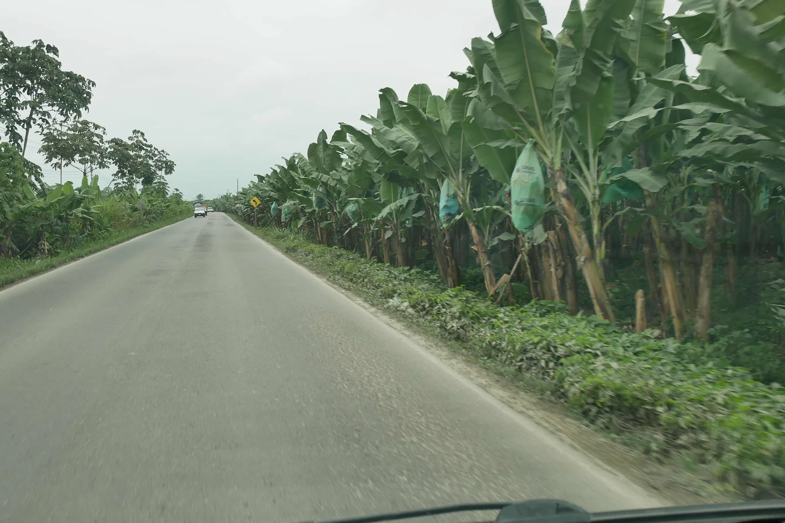 Coming out of the desert mountains of southern Ecuador we eventually reached the coastal plain about fifty miles from the border with Peru, and once we were at sea level we found hot humid sea air and greenery which consisted mostly of banana plantations.