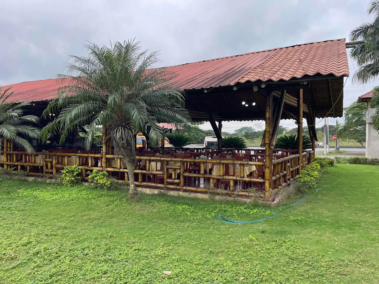 We like stopping at roadside food stands but banana country was a bit below even our lax hygiene standards so when we saw a rather imposing structure advertising lunch we decided this was the place for an early noon time break. We were rewarded with a clean toilet complete with seat and paper and soap at the sink. De luxe living indeed.