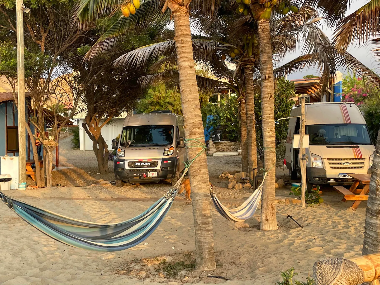 And then we save ourselves by diving into this Swiss owned and run piece of beach. Hot shower, electrical plug in, cold beer and a shady parking spot on the beach.
