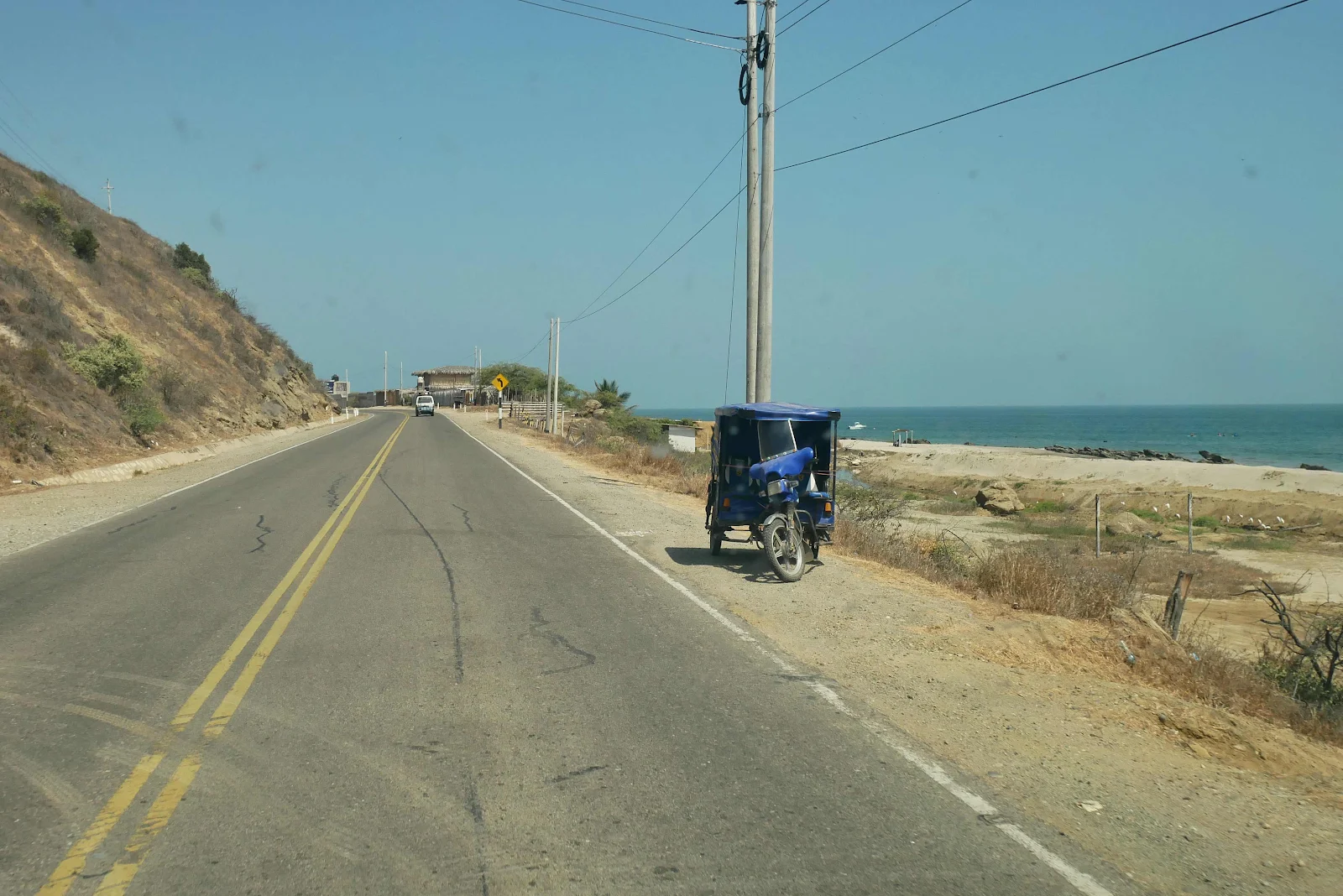 An hour south of the campground, along a road with stretches of decent pavement and stretches of potholed hell we came across a checkpoint. It’s just a matter of showing the vehicle permit, if that, and driving on. Not today, Satan. The customs officer asked for vehicle papers and Rusty’s papers which we didn’t have. We were almost to Máncora an hour south of our starting point.