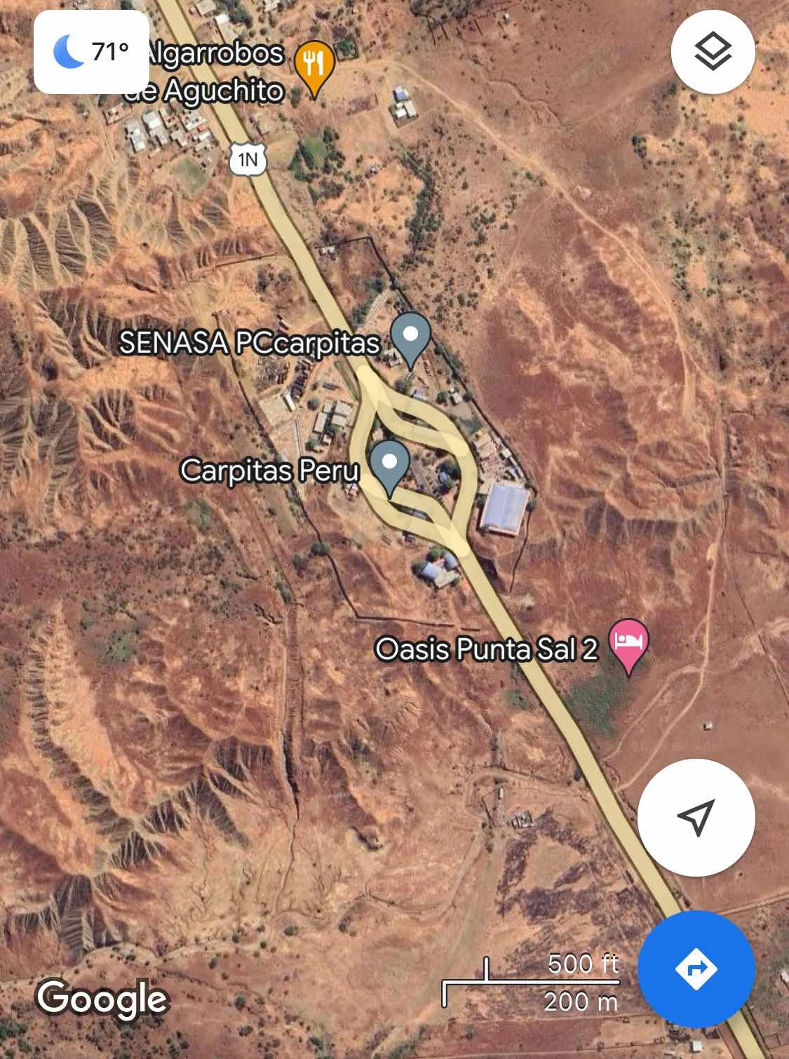 I took no pictures of the checkpoint but everyone was friendly and polite and luckily we speak Spanish so we had a discussion and I showed him our exit papers from Ecuador for Rusty so he knew we had simply screwed up. He suggested we carry on and tell the next checkpoint we entered Peru at night when the Agriculture office (SENASA) was closed.