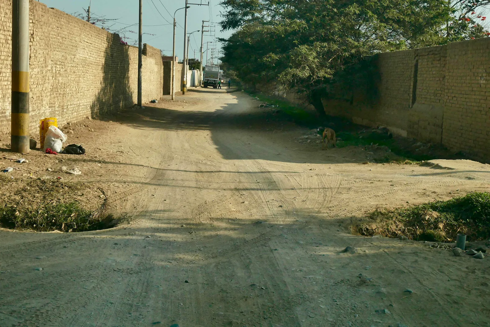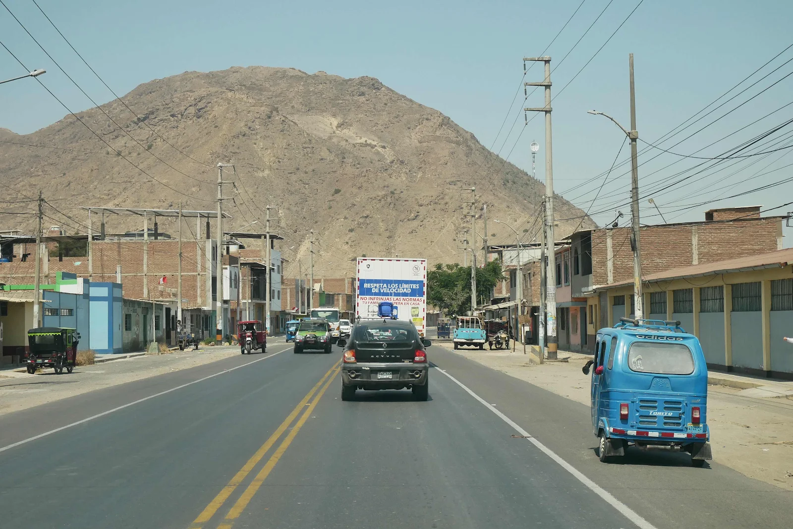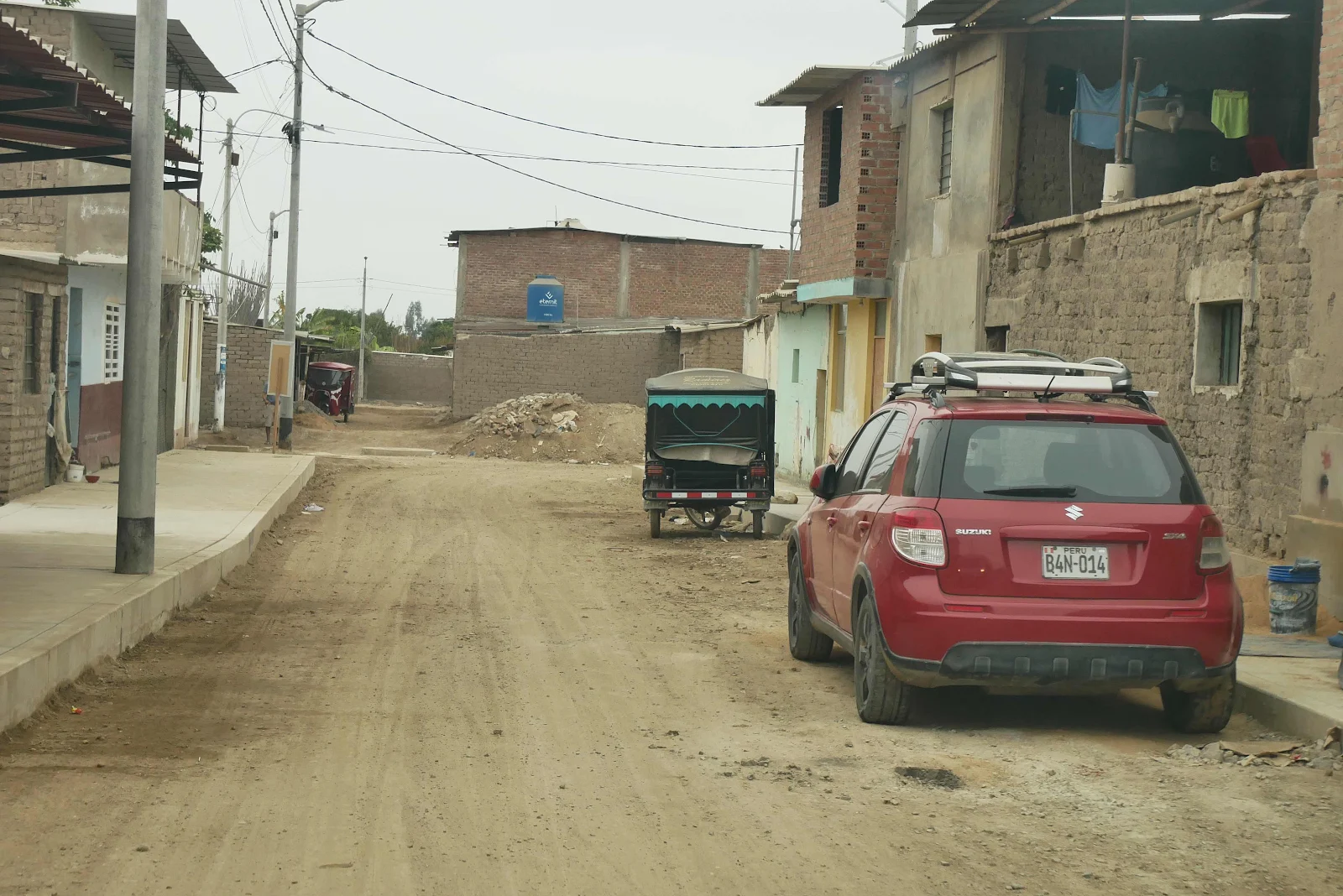 Private technical college advertising. We got to the outskirts of the city of Trujillo and had arrived too late for the archeological site called Chan Chan. So we set about looking for a hostel for the night advertised on iOverlander as always. Google Maps led us down a crappy dirt road, to end that long day as it had started.