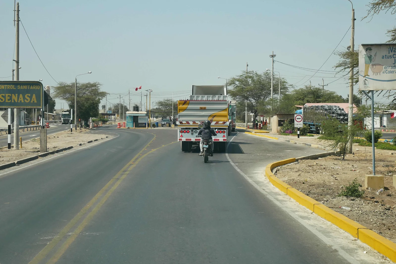 And we passed another customs and agriculture checkpoint. We were ready to show our van permit and also our hard fought dog papers for Rusty. Guess what? The officials were too busy on their phones to flag us down. Typical.
