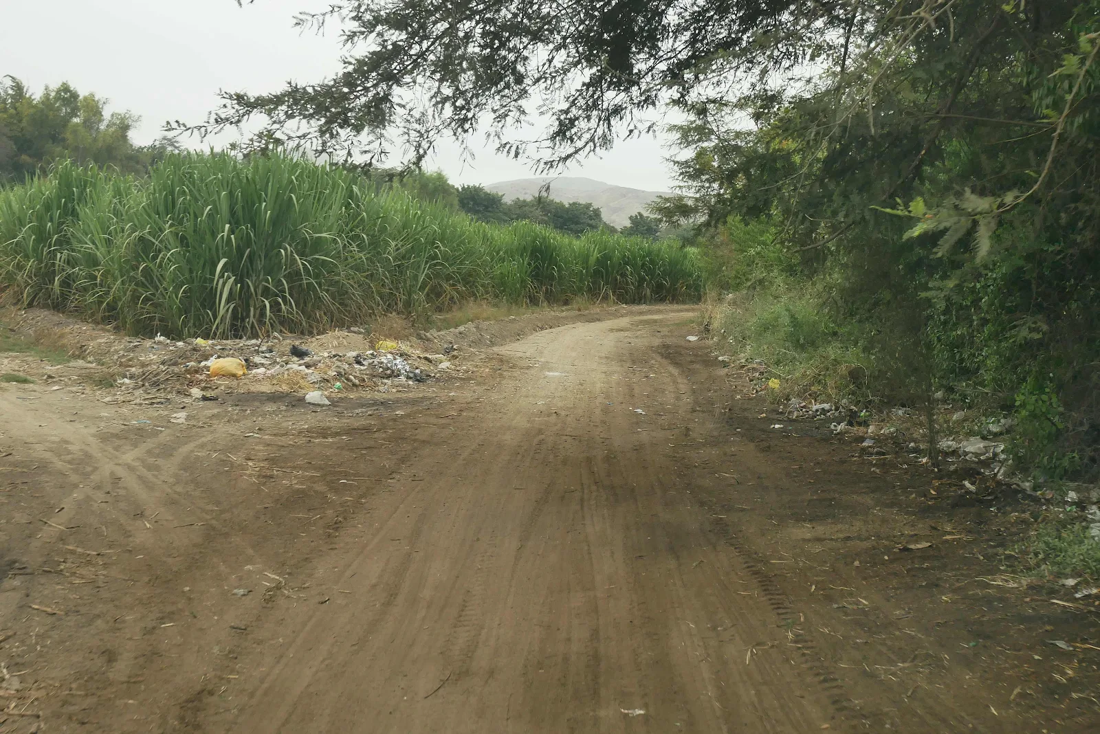 And then we met a lady with a flag directing us to the left. Road works closed the already crappy road and we were on a one lane dirt lane through the sugar cane.
