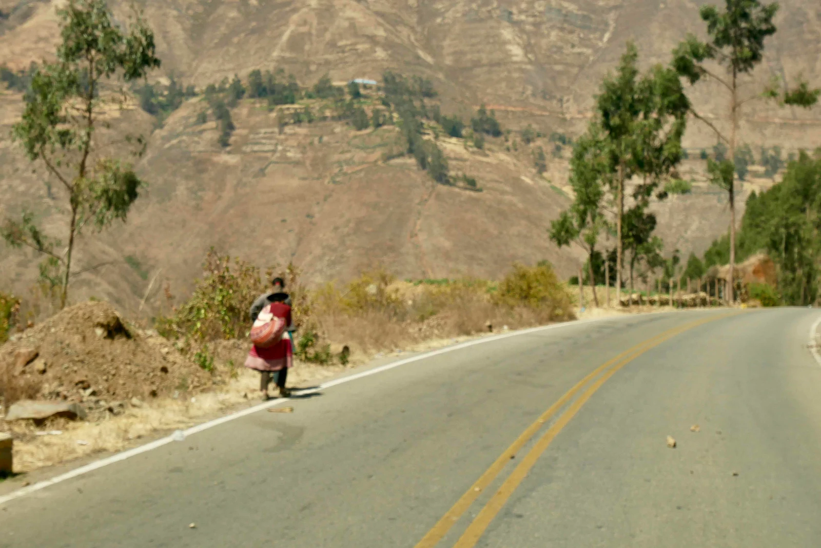 It was busy on a Sunday morning but it looked pretty much like any other Peruvian town and I found a spot to park near the supermarket but the towns reputation put Layne the intrepid shopper off so we kept going down the main drag.