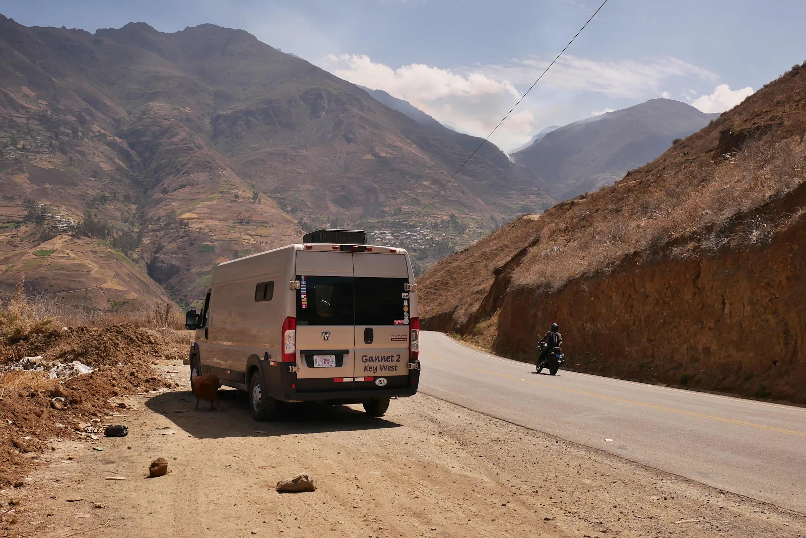 The town of Huaraz sits in the valley under the mountain range and it enjoys a rather poor reputation. There is no campsite for travelers and vehicle break ins have been reported in the past six months so we decided not to stop to pick up any groceries there.