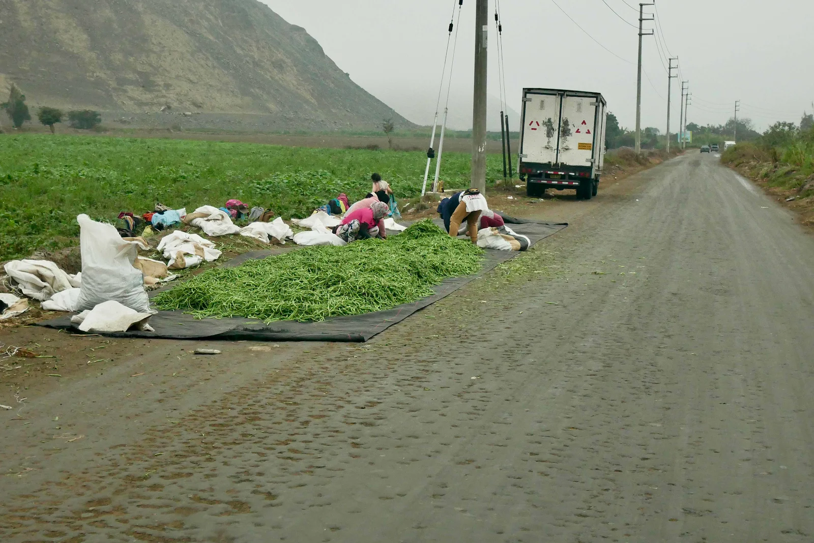 We left our gas station overnight spot at quarter to eight with the prospect of an hour long drive on a bumpy dirt road to Caral, the sacred city.