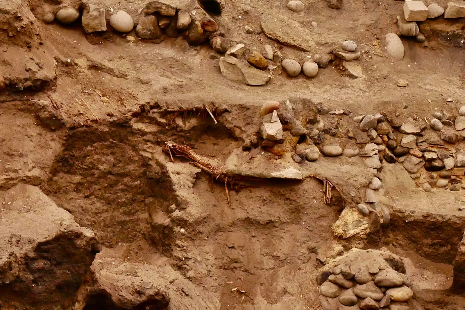 That third tomb is visible below in the middle of the photo where some reed matting is barely visible. These people buried their nobles in reed blankets apparently.