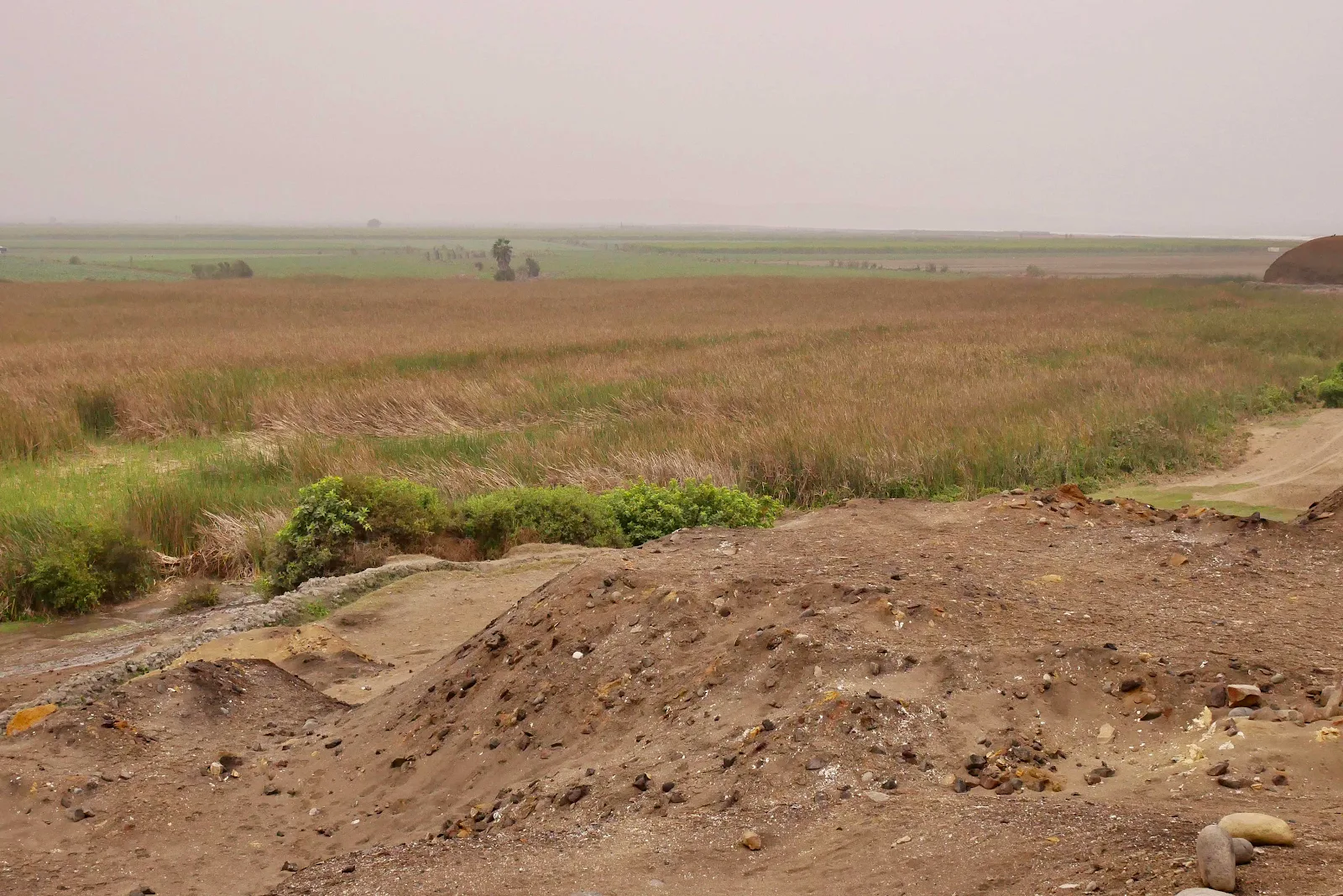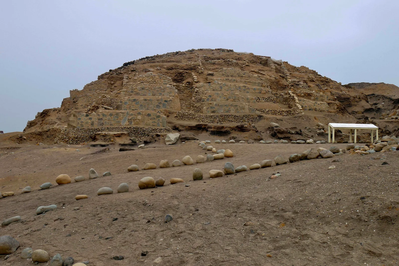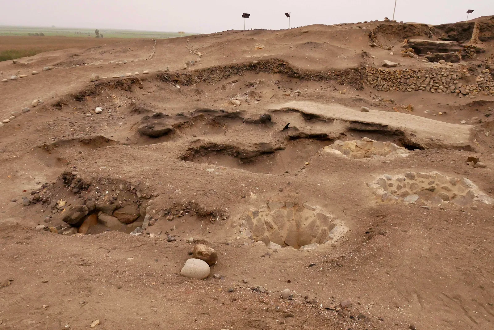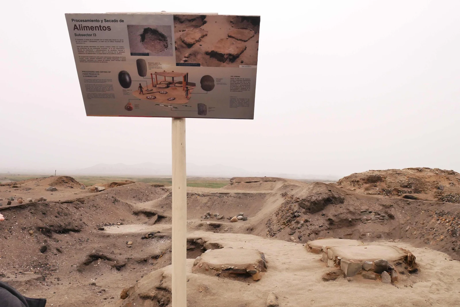 The city located here 5,000 years ago survived in fishing and the Pacific Ocean lapped the shore of the community where red beds grow today. The Supe River provided freshwater coming down the valley from the left.