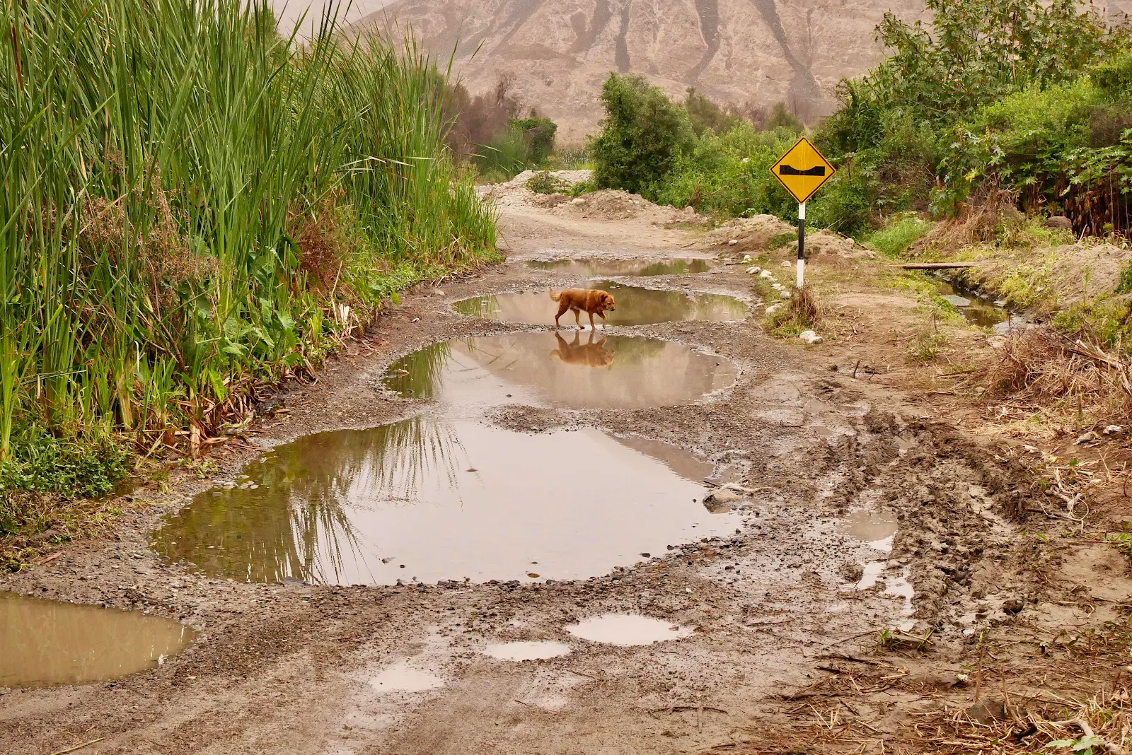 Pavement ran out soon enough and not unexpectedly. We were told the drive was a rough dirt road with a river crossing but we had also heard Caral is said to be part of a complex older than any other city in the world so we couldn’t pass that up.