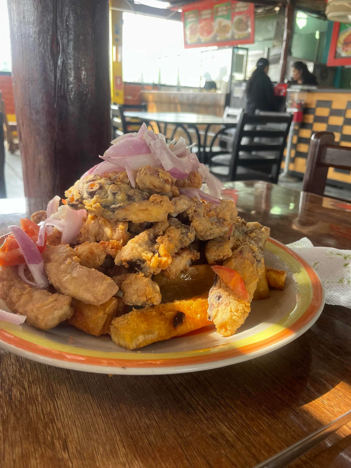…and a huge heap of fried fish on a bed of fried yuca for Layne. We stuffed our fridge with leftovers as you can imagine.