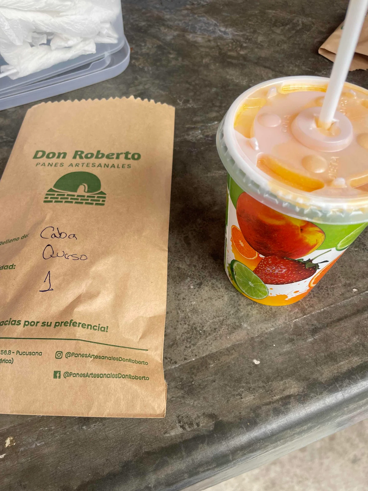 We got a bunch of empanadas for later and a slice of pizza each with a juice. I got papaya and Layne got passion fruit.