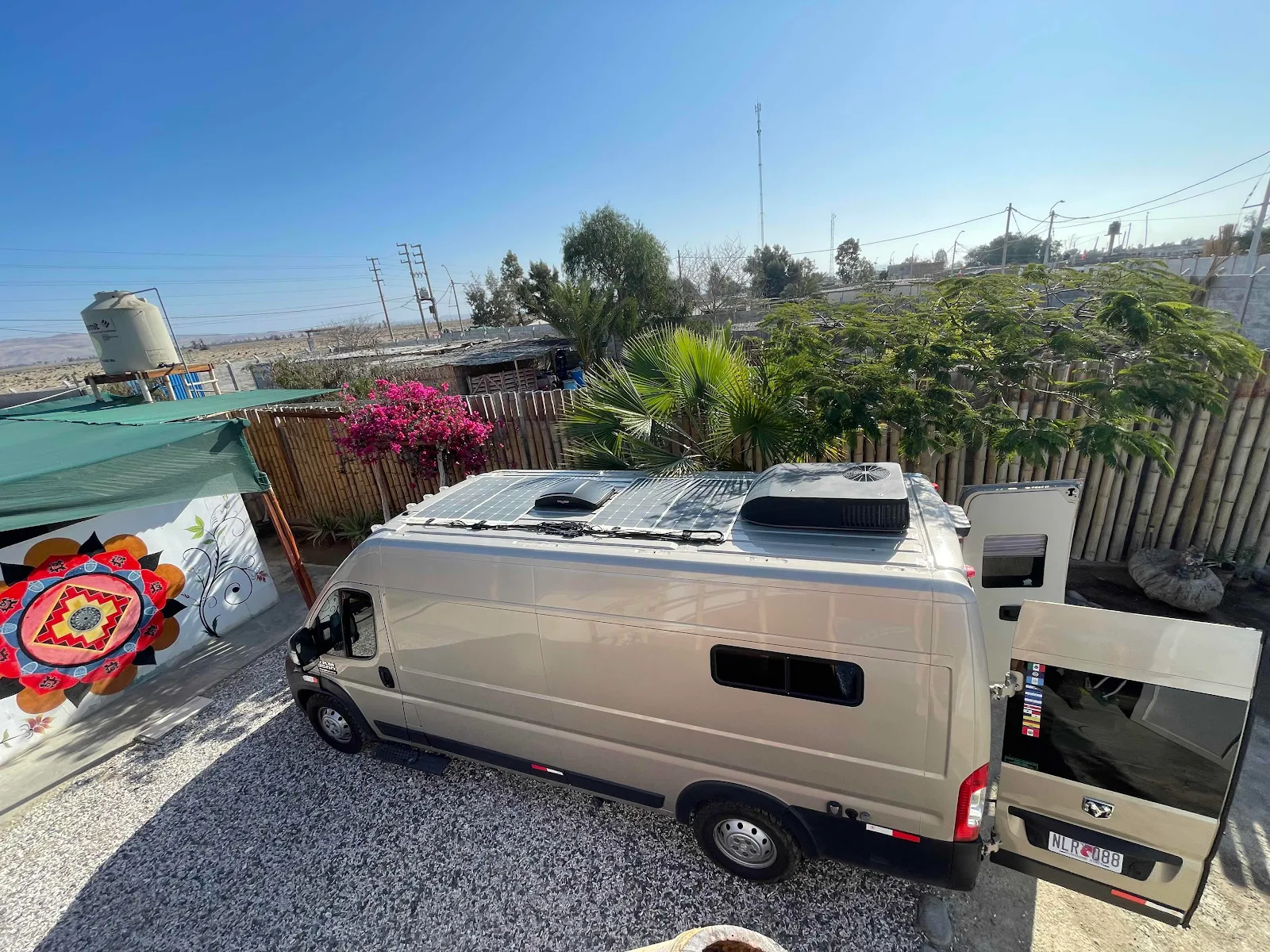 We had had to wait a day in Paracas after the boat ride as the sun remained hidden by heavy overcast and our laundry stubbornly refused to dry. We sat in the cab out of the freezing sea air and watched “Oppenheimer” on our iPad.we had to keep our eyes on Rusty as he had inadvertently decided he liked sitting in some plants that apparently were valued by management so that was a bit of a stress but he cooperated when we said no to him. The forbidden zone which, when he understood was forbidden, Rusty no longer slept in. Good boy.
