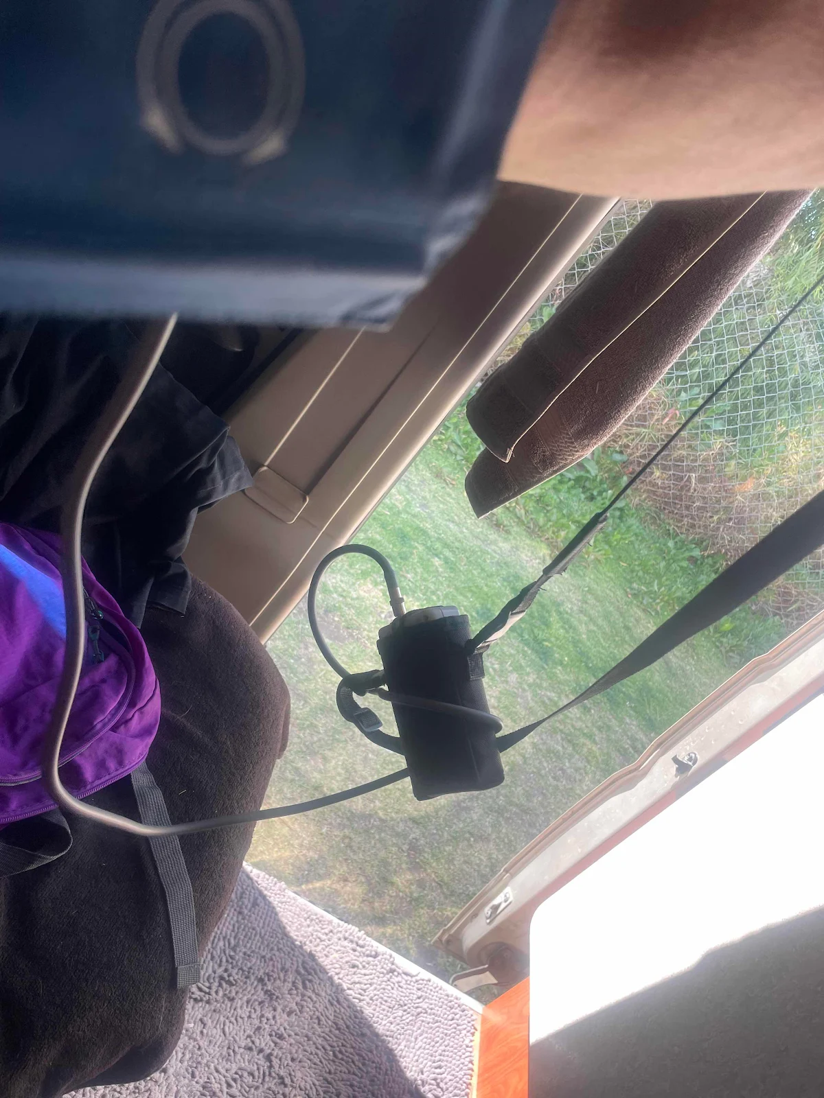 A French couple in a van have a rescue along with them. She speaks English, he doesn’t much and my French got swept aside. We talked to her a bit, a traveler in her own right and she is actually Swiss, but they are going north so…they had little Chico go soon. Rusty actually got along with Chico which surprised me.