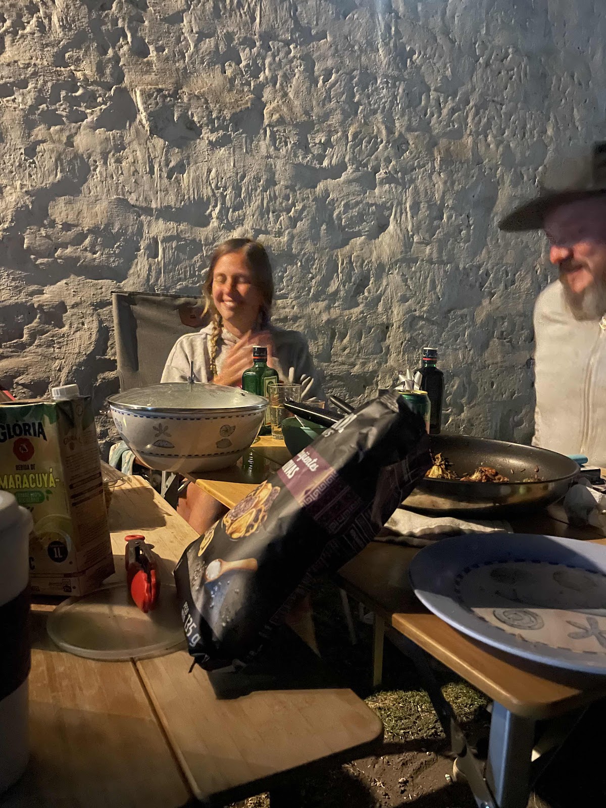 Nina had her 35th birthday and we drank Pisco and ate cake at the potluck with the American family hunkered grumpily in their Sprinter van. Sean is a social worker and Nina is a physical therapist and they have no deadline to reach Alaska with their adopted Chilean kitten rescued from a log pile on a farm. You can see Layne getting their WhatsApp.