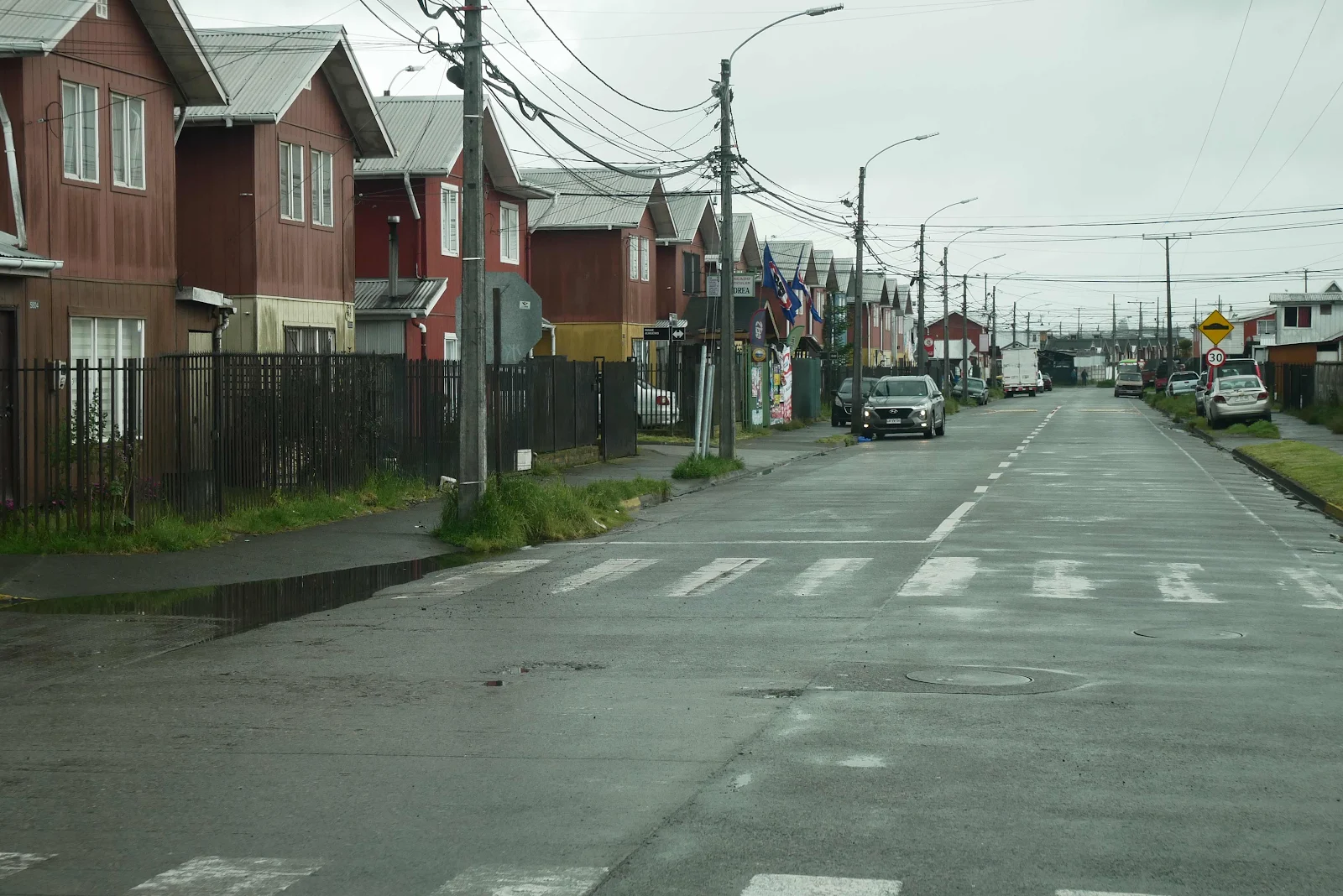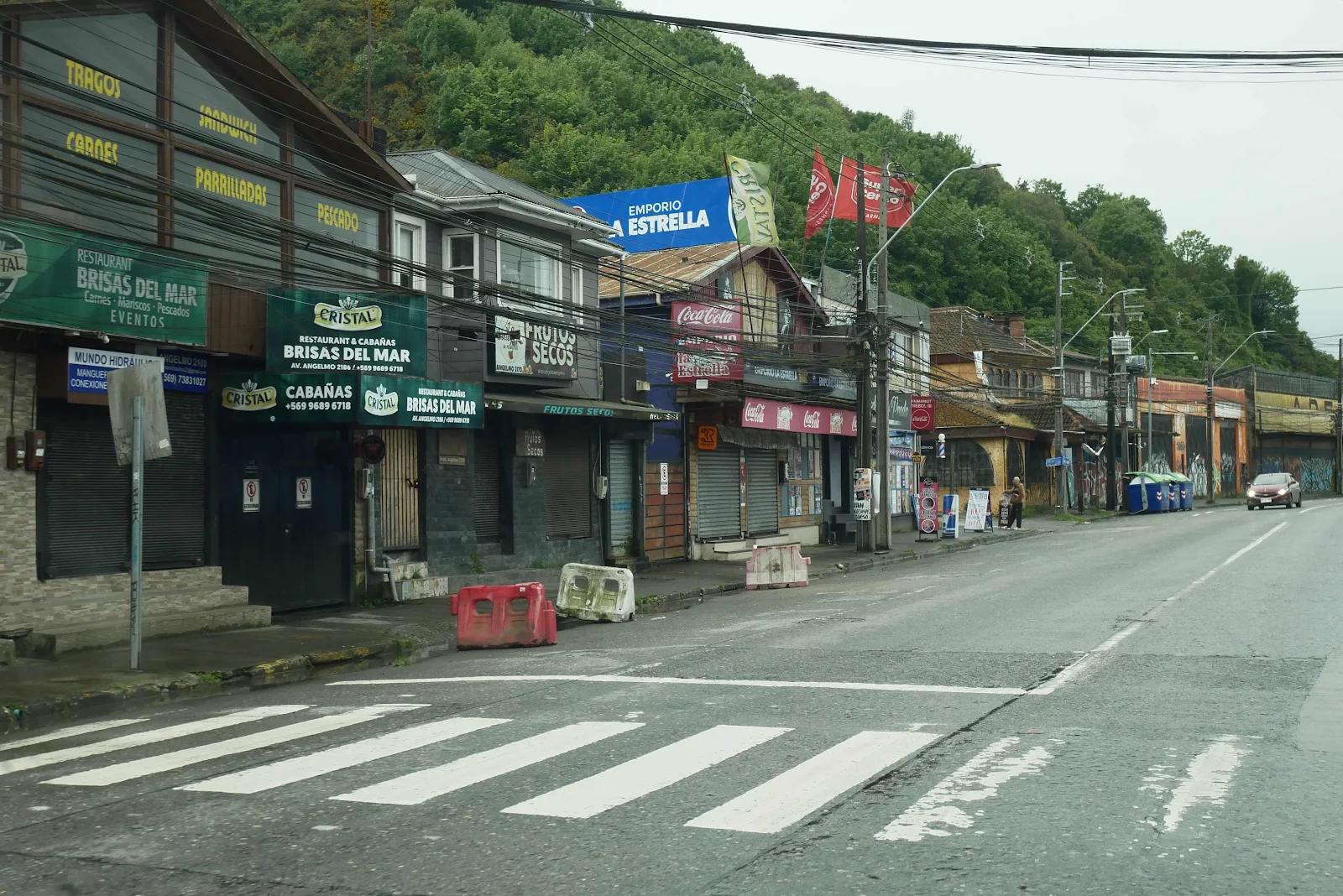 And after it blew over no way was Rusty going to walk to the Plaza de Armas, the centrally located park three blocks away wherein lies Puerto Montt’s famous (they say) wooden cathedral. We were walking the scuzzier side of town.