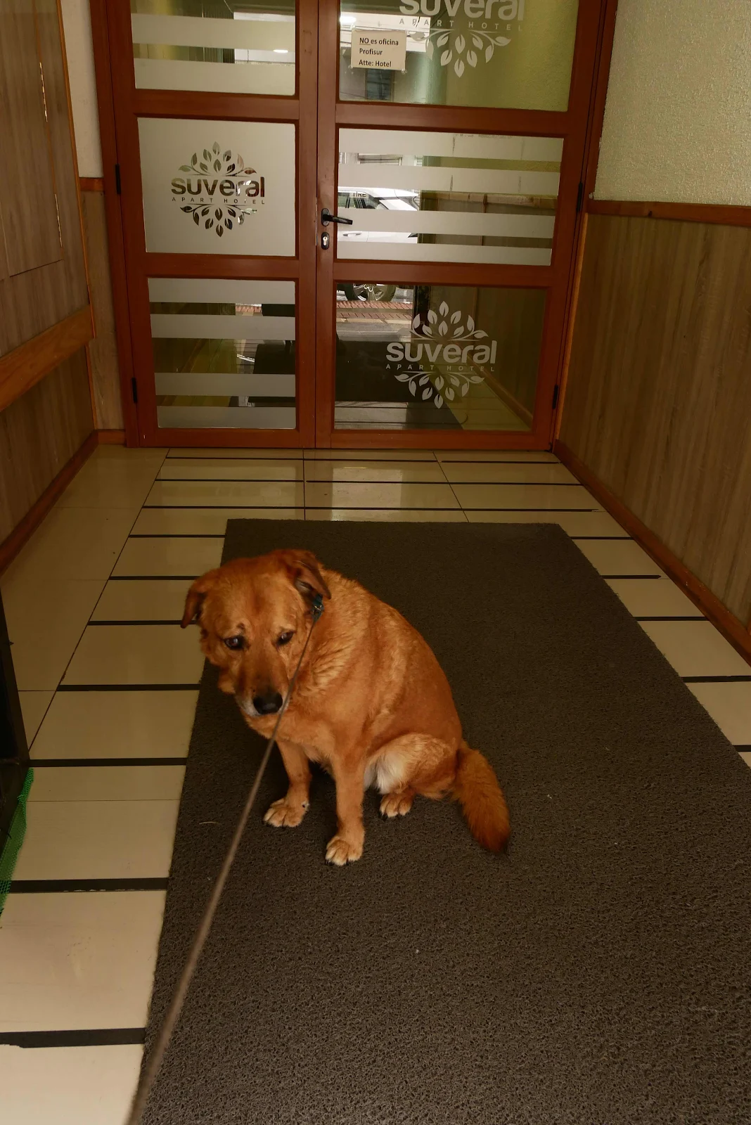 Rusty is not a fan of sudden down pours and gusts of cold wind. He took refuge in a doorway and refused to budge.