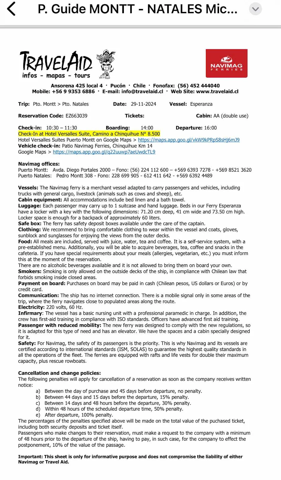 Facundo, a lanky cheerful bearded Argentine didn’t freak out when I mentioned our inverter. He wants to upgrade our battery system which he says is not a great installation. They can order parts from Santiago to rebuild our inverter/charger layout. He seems confident and capable. It’ll take two days he said or a few more if we need to order parts from Santiago. I hope for the best. We have 16 days until the ferry leaves Puerto Montt for Puerto Natales. We got a memo from our travel agents.