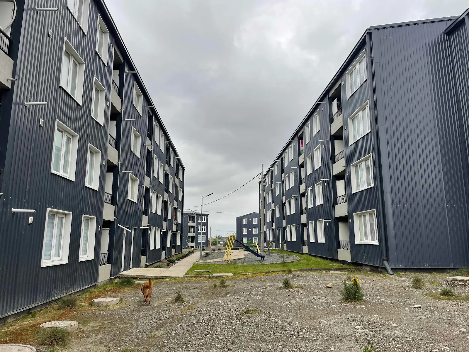 The apartment complex in Puerto Montt is efficient and comfortable but not heartwarming or cheerful or engaging. Rusty likes it.