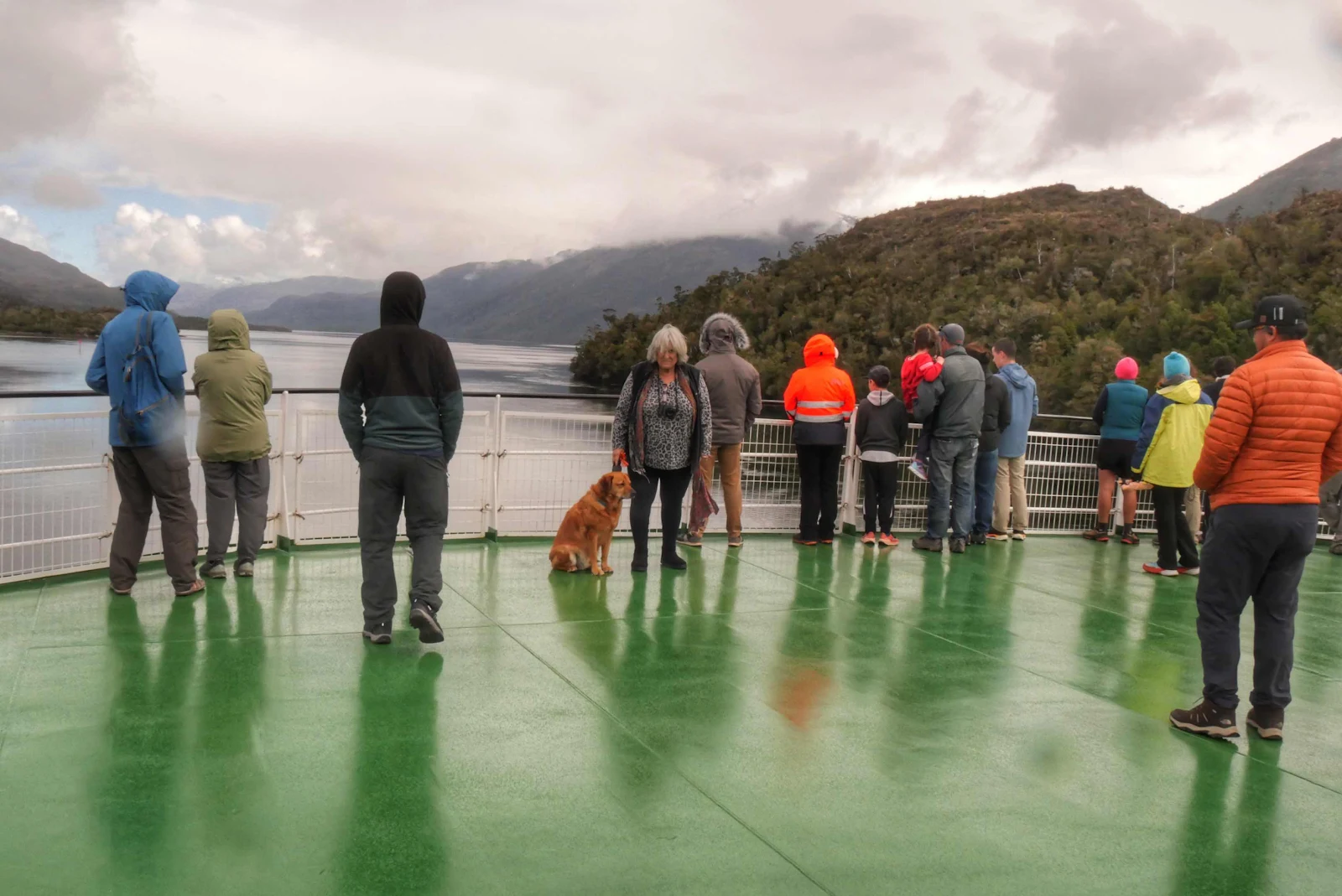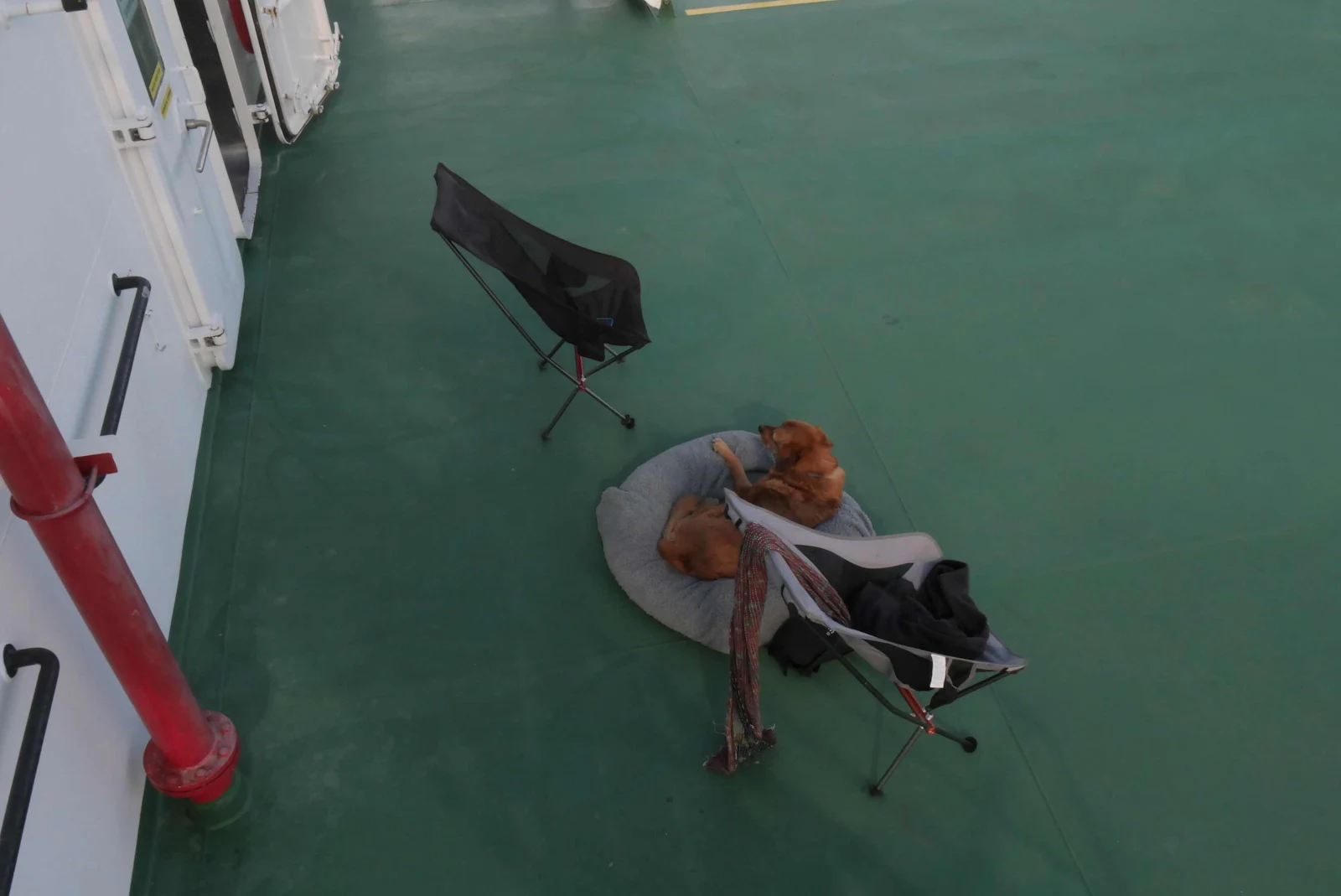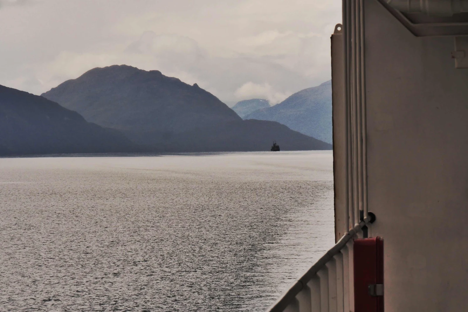 Most of the journey has been in flat waters threading through channels, though last night we were in the open ocean and enjoyed some pitching and slamming. Rusty was not amused.