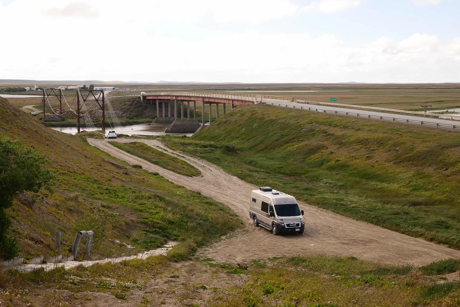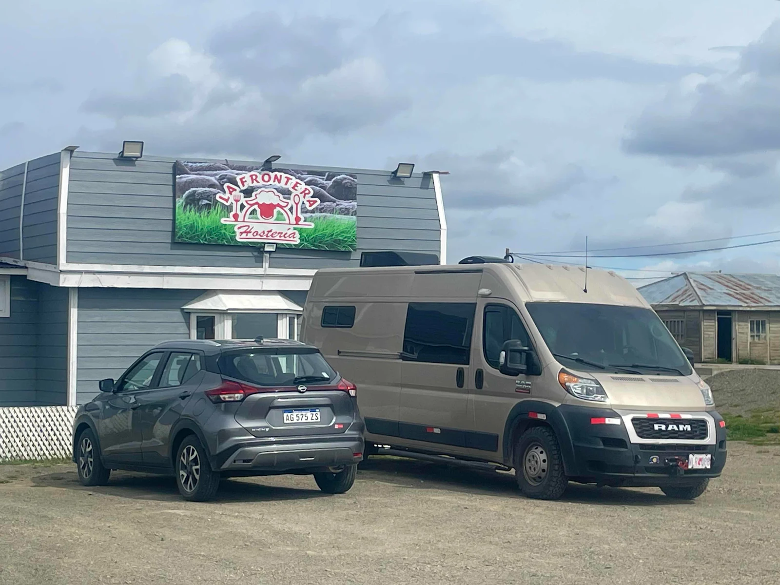 The campground in Rio Grand turned out to be a driveway to a house so we decided to press on. As we had lost no food at the border we had no need to shop so we went south. By the time we got back to the highway the hitch hikers were gone so we started looking for a wild camp pretty soon. The Falklands are not Argentine but they push that line here even though they have trouble managing their own economy.