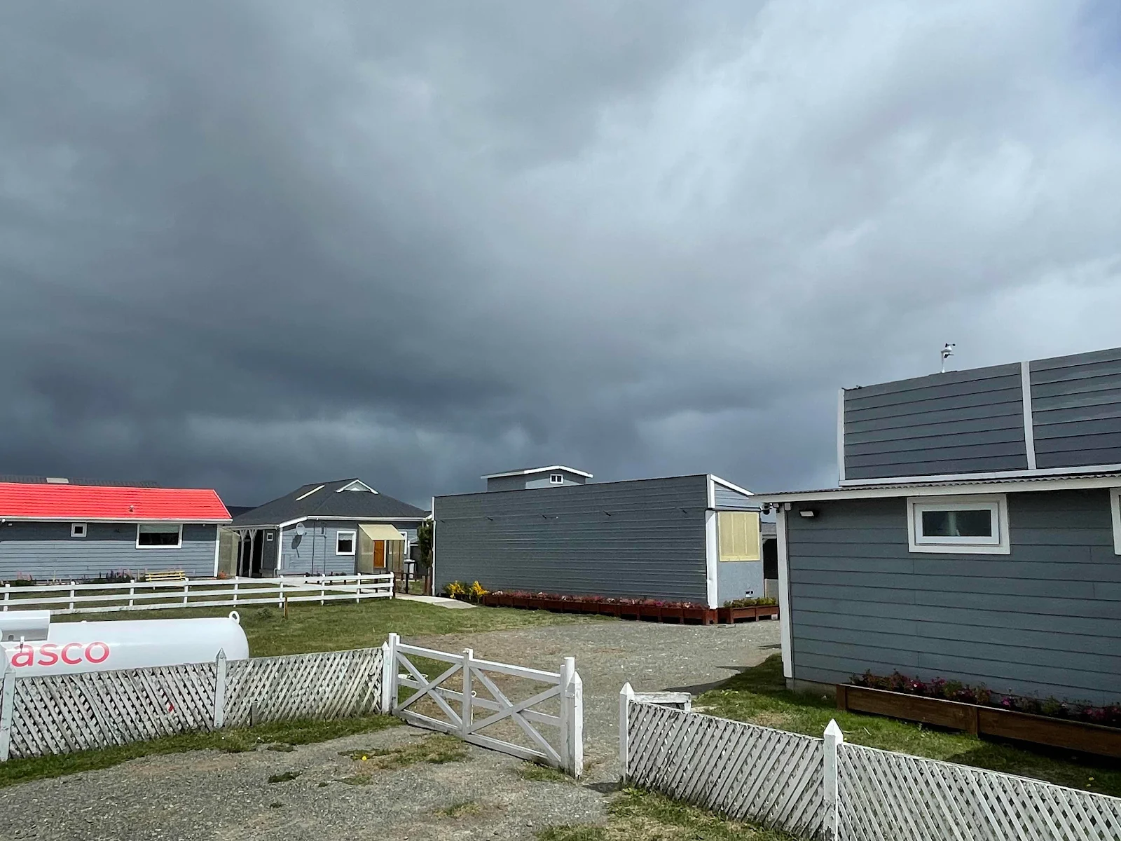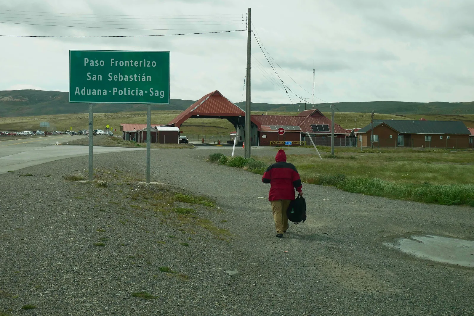 At last the border. And this one was over in minutes. We parked, walked in struggling against the wind and we got it all done, including a stamp on Rusty’s Chilean permit in five minutes. No indicted our fridge or tour vegetables or anything.