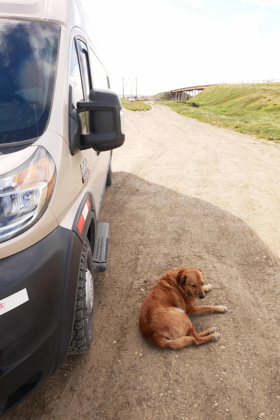 Layne warmed him up with coffee while I spent a cold 45 minutes reflating our tires to proper pressure for pavement. To make dirt roads more comfortable I reduce the tire pressures by half which takes a voile of minutes. If we did this often I’d get a more powerful compressor but we don’t usually drive far enough on dirt to make airing down desirable. We dropped our passenger off while we stopped for lunch.