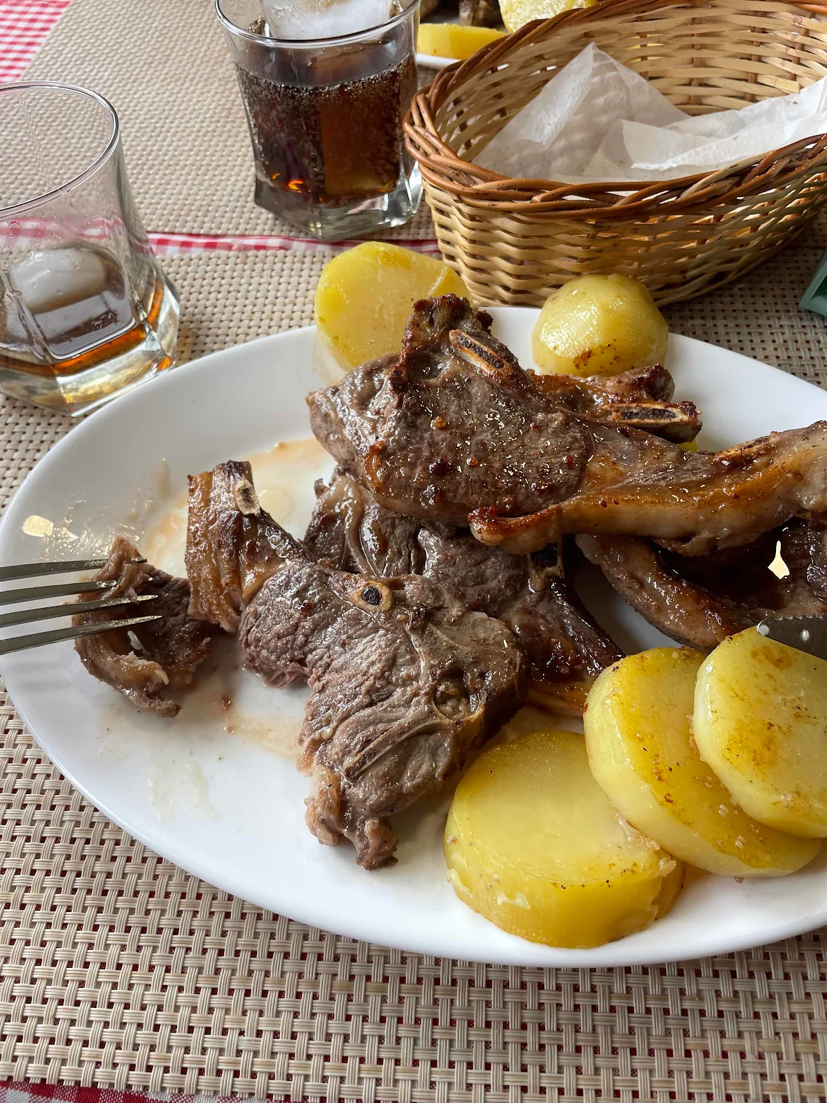 Home grown lamb chops were next and we each got a pile which was intimidating. The flavor was outstanding, not Haney but tender and well salted and we ate the lot.
