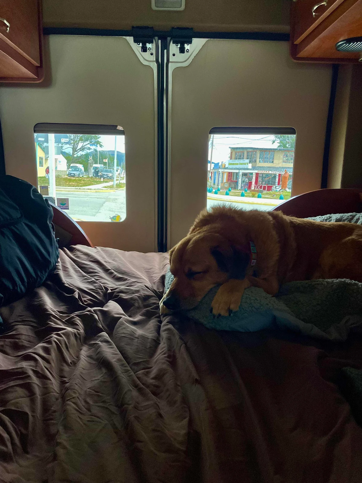 He explored it enough to put him in a coma my gradually aging dog. It was time to go camping.