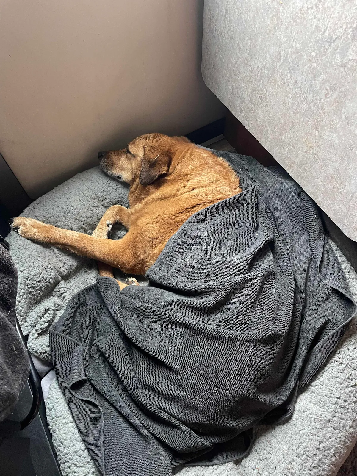 Normally Rusty hates blankets but I guess playing in the cold rain got to him that day. He stayed y see the towel.