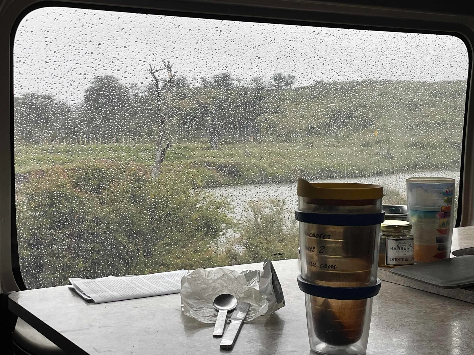 We took walks between the downpours, watched the drizzle and listened for fireworks but hearing none we had to conclude our plan was successful.