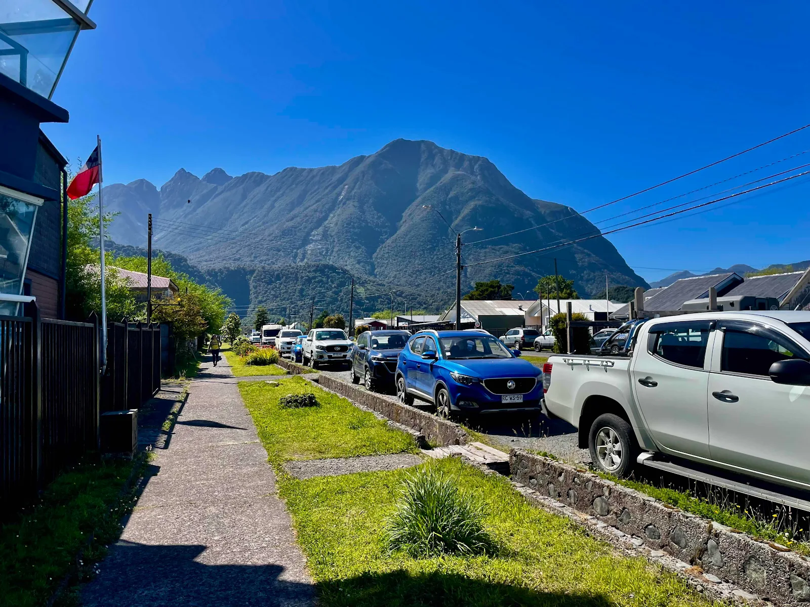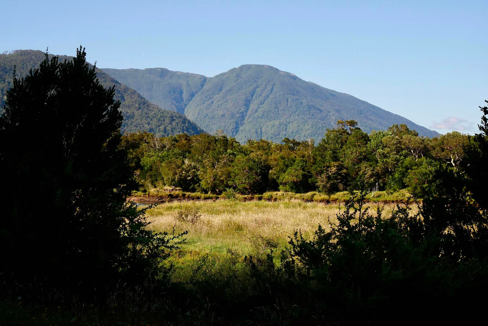 The day started a few miles outside the village of Chaitén and it promised sunshine when I took Rusty out for his walk.