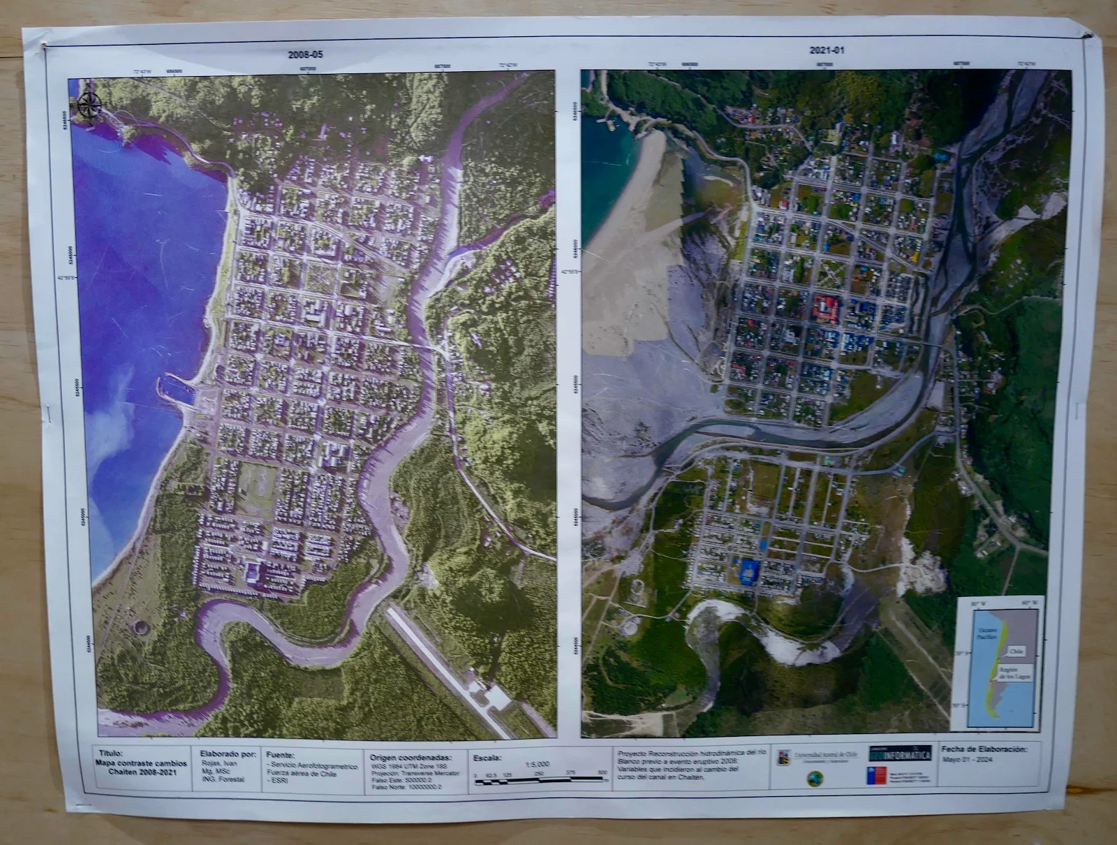 Below you can see why the flow went straight down the valley into Chaitén. The mess flowed out to sea a quarter of a mile and created a whole new coastline away from the city.