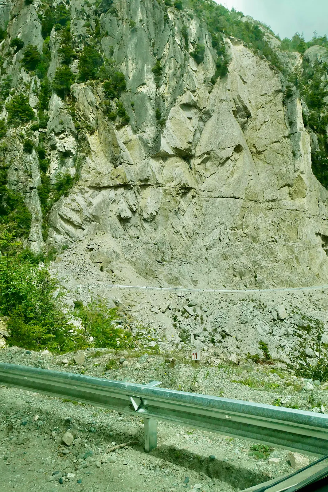 There was a lot of brand new guardrail which on one level was reassuring but on the other was a little disturbing. You can see the road on the cliff face opposite and there is a lot of shiny new guardrail all along it.