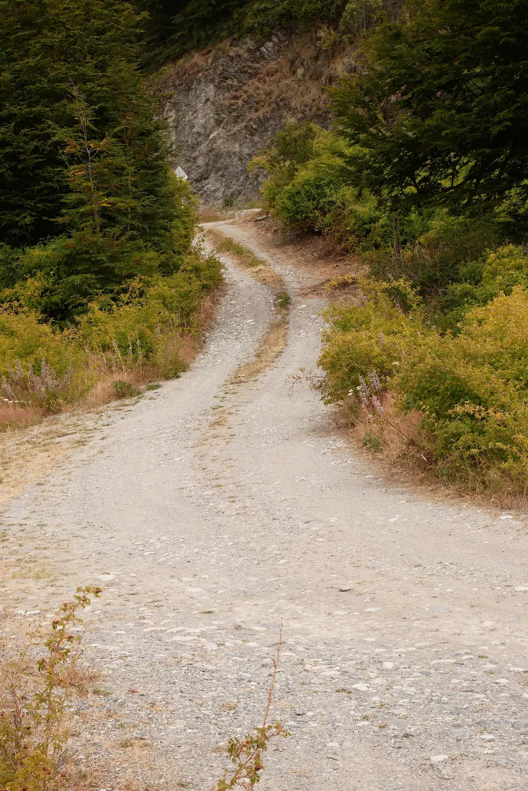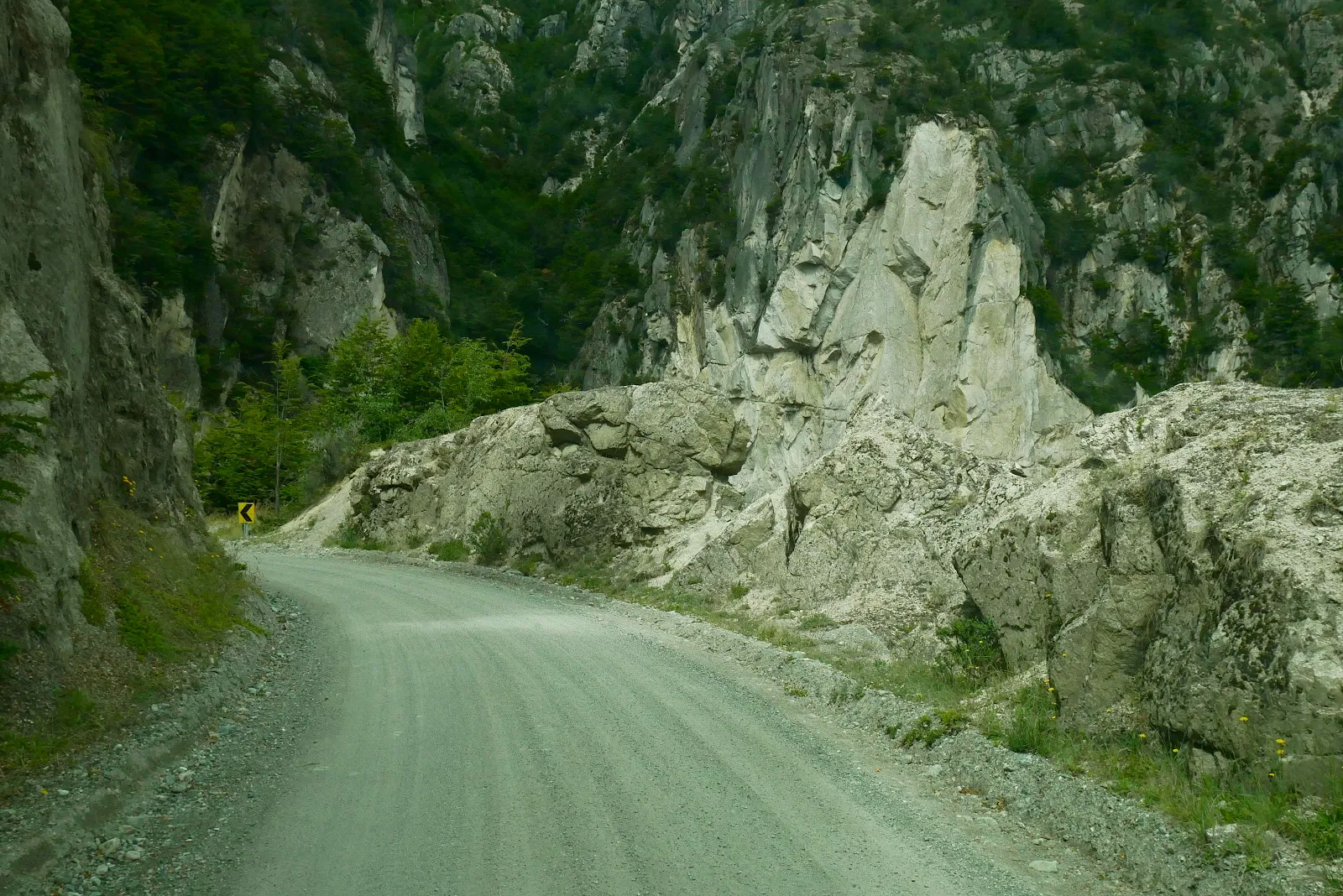 Obviously we didn’t slide back and tumble a thousand feet straight down the mountain into the village of Bahia Murta in the River Murta delta far below us. The tires scrambled desperately as we glanced at each other. I straightened the wheel as soon as I could and we crawled up the road, the tires barely gripping, our hearts in our mouths. Had we stopped or lost ground and slid back I have no idea how much damage we would have done or how we would have turned out of this spot. We knew we were getting into some gnarly stuff going over that granite mountain but that hairpin stopped us.