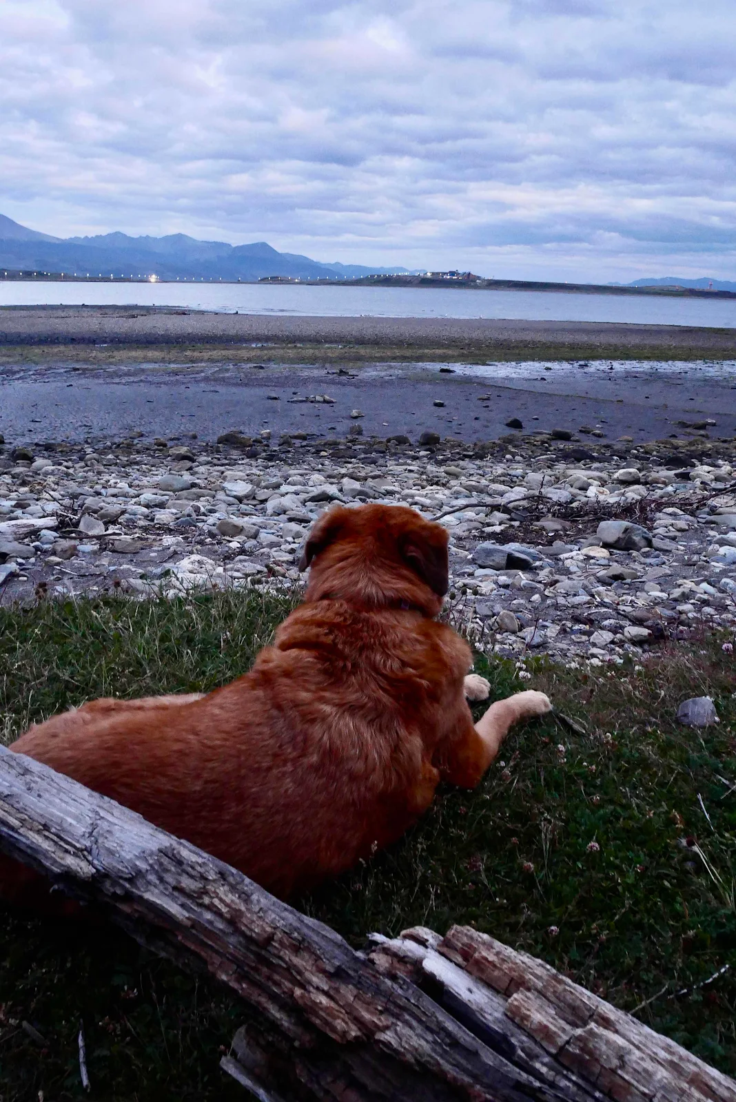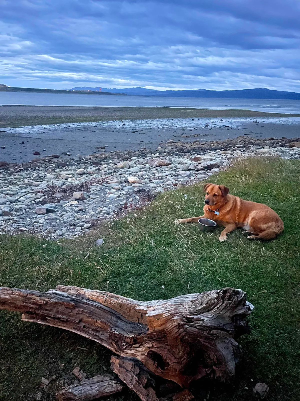 In the morning the van was warm and I was ready to walk Rusty which was just as well because by the time my tea was brewed the skies were going black and a twenty mile an hour gusts were honking out of the southwest across the channel.