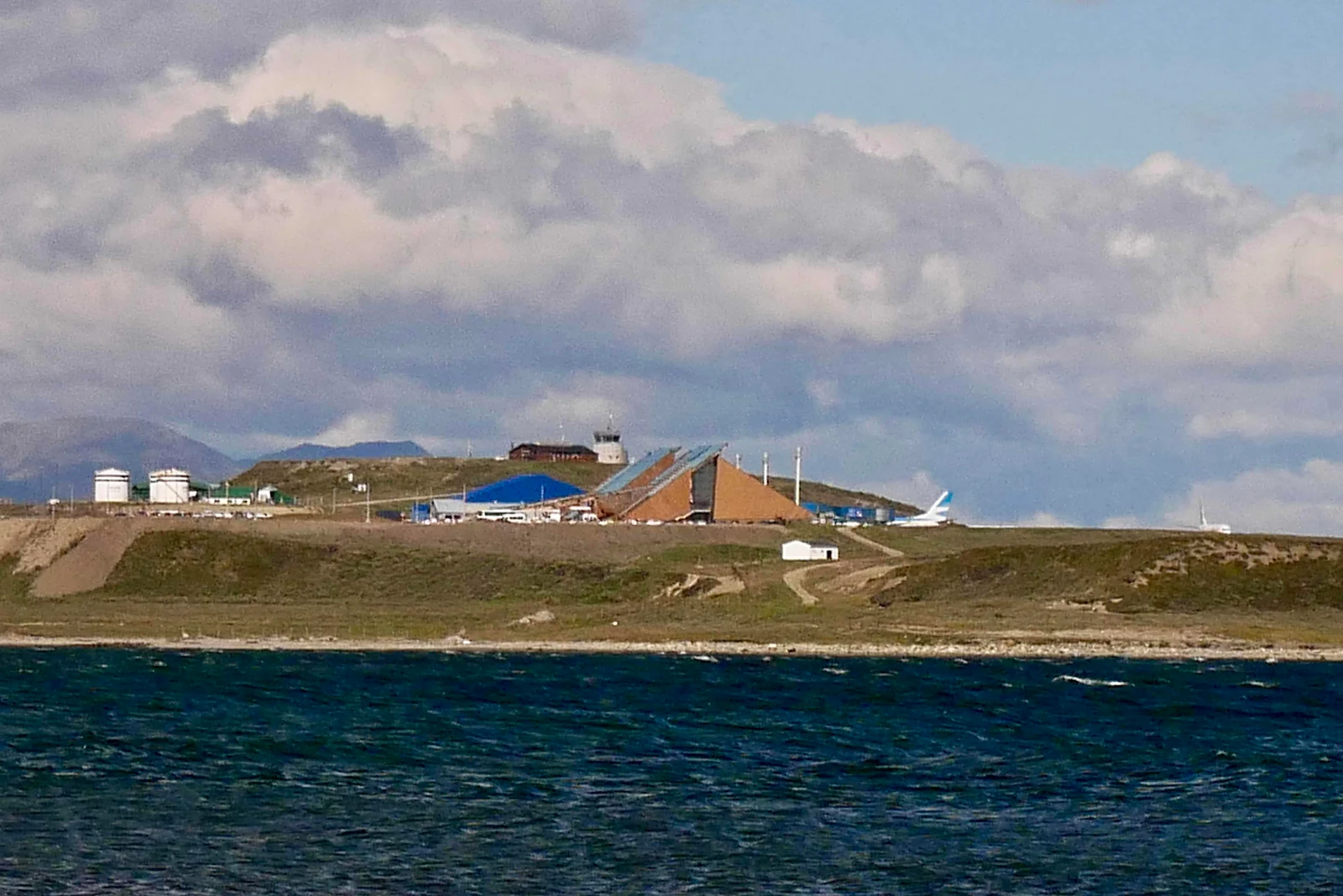 The airport to the right and the town in the distance.