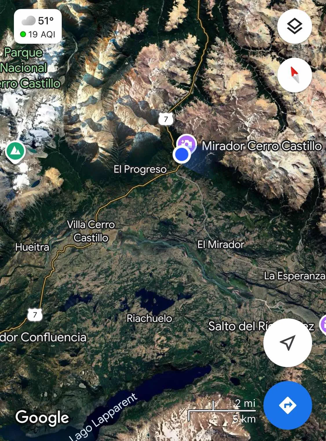 And then we reached the glorious pavement with eight miles to go to get to the little town of Villa Cerro Castillo where gasoline and potable water and a toilet dump station awaited us.
