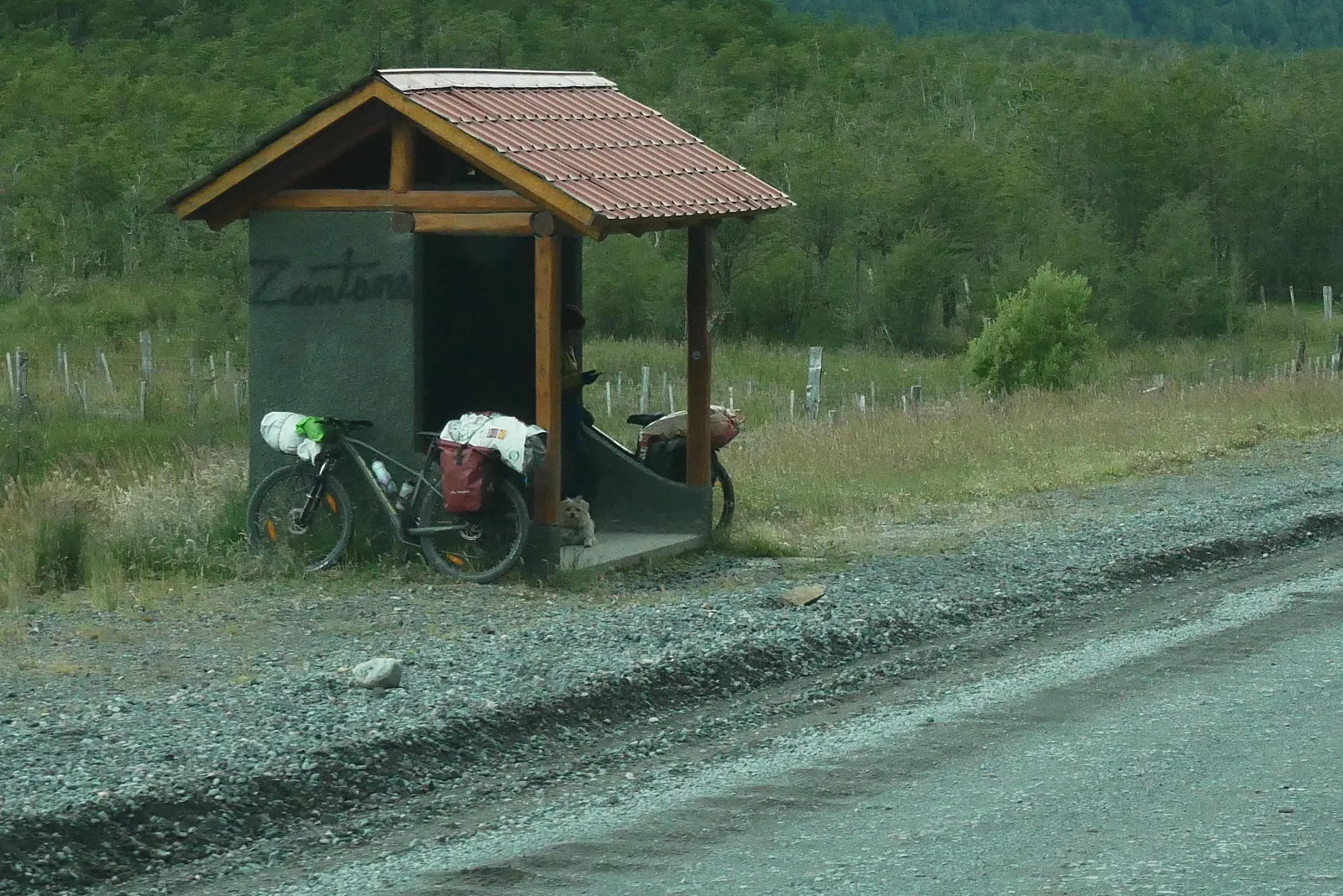 We saw dozens of cyclists and there are no dedicated shelters for them here as there are in Tierra Del Fuego so bus stop shelters will do in a pinch.