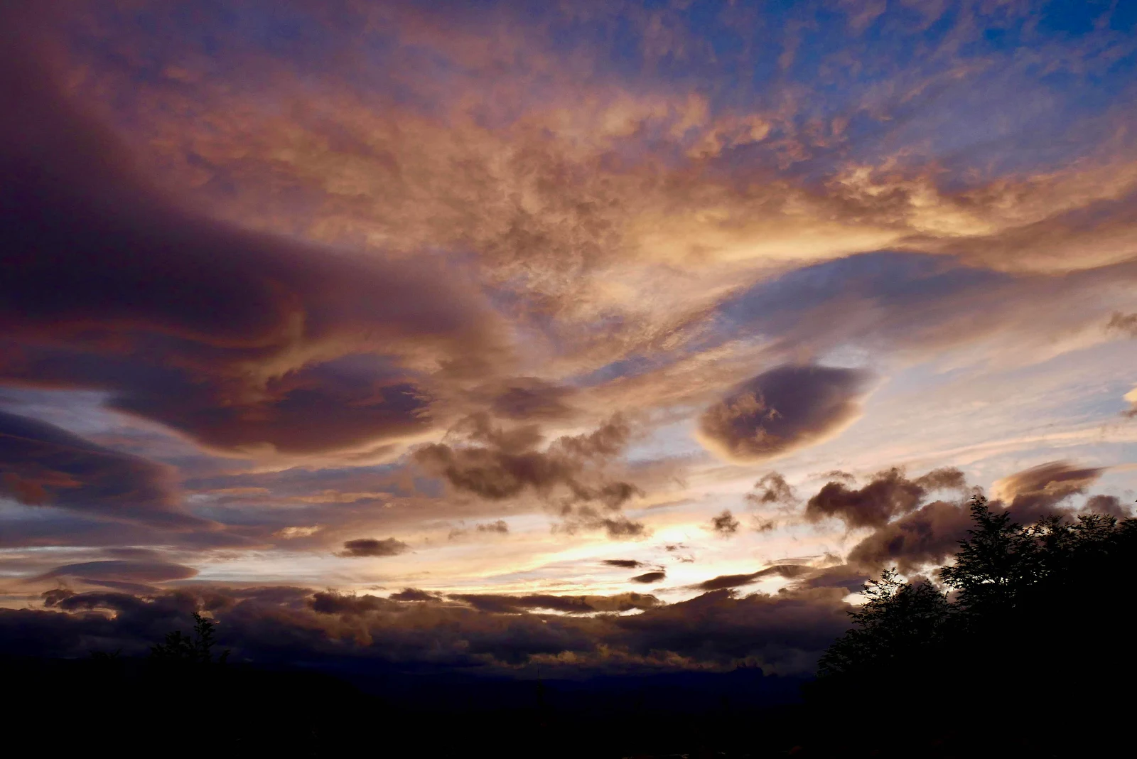 Sunset. I went out while it was still light and adjusted the tire pressures as the rubber had cooled off and the pressure readings would be more accurate. It was freezing cold and I did not enjoy standing around watching the compressor add a few pounds to each tire.