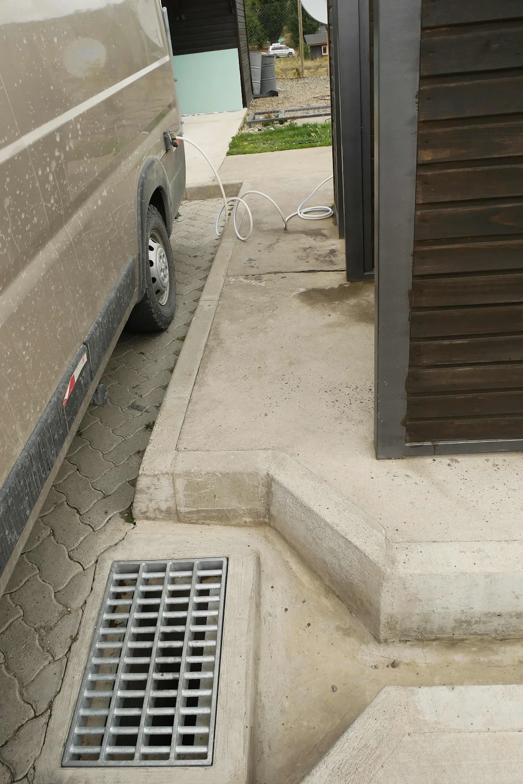 The grating is the dump station and it was very clean. The faucet had a strong jet of water had we loaded twenty gallons pretty rapidly.